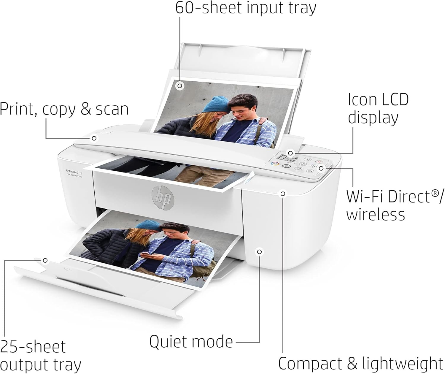 The HP DeskJet 3772 All-in-One Printer is the ultimate compact solution for printers for home use. This versatile home printer wireless device offers print, copy, and scan capabilities, making it perfect for everyday tasks. With built-in wifi connectivity, this wireless printer allows easy printing from your smartphone or tablet via Apple AirPrint, HP ePrint, and Wireless Direct. You can also connect directly through USB for added flexibility. Ideal as a wifi printer and scanner printer, the HP DeskJet 3772 delivers quality performance in a space-saving design. Perfect for any home setup, it combines convenience, wireless functionality, and impressive results all in one.