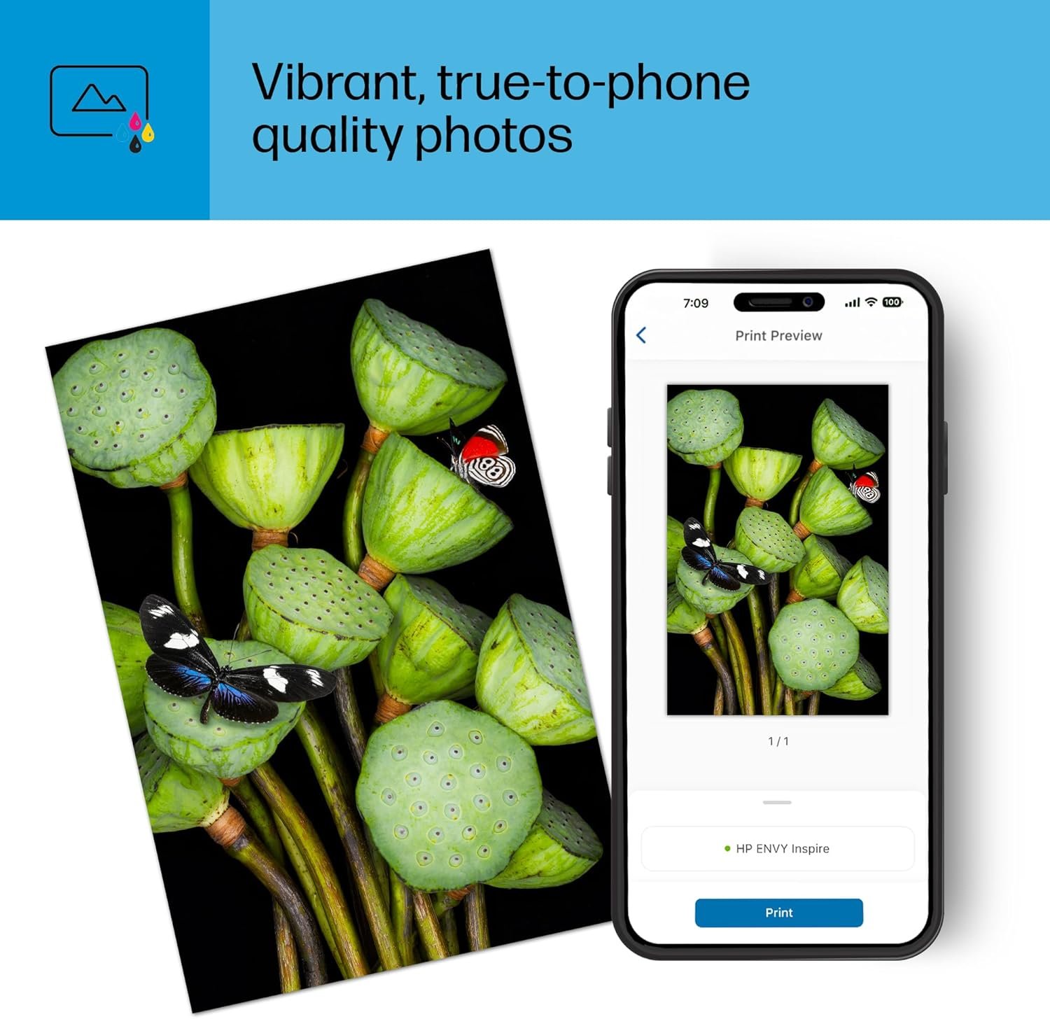 VIBRANT PHOTOS – Photos that look as vibrant as they do on your screen with true-to-phone quality prints, plus custom photo features in the HP Smart app. HP 5×5″ square and 4×12″ panoramic photo paper sizes are optimized for the HP ENVY Inspire series.