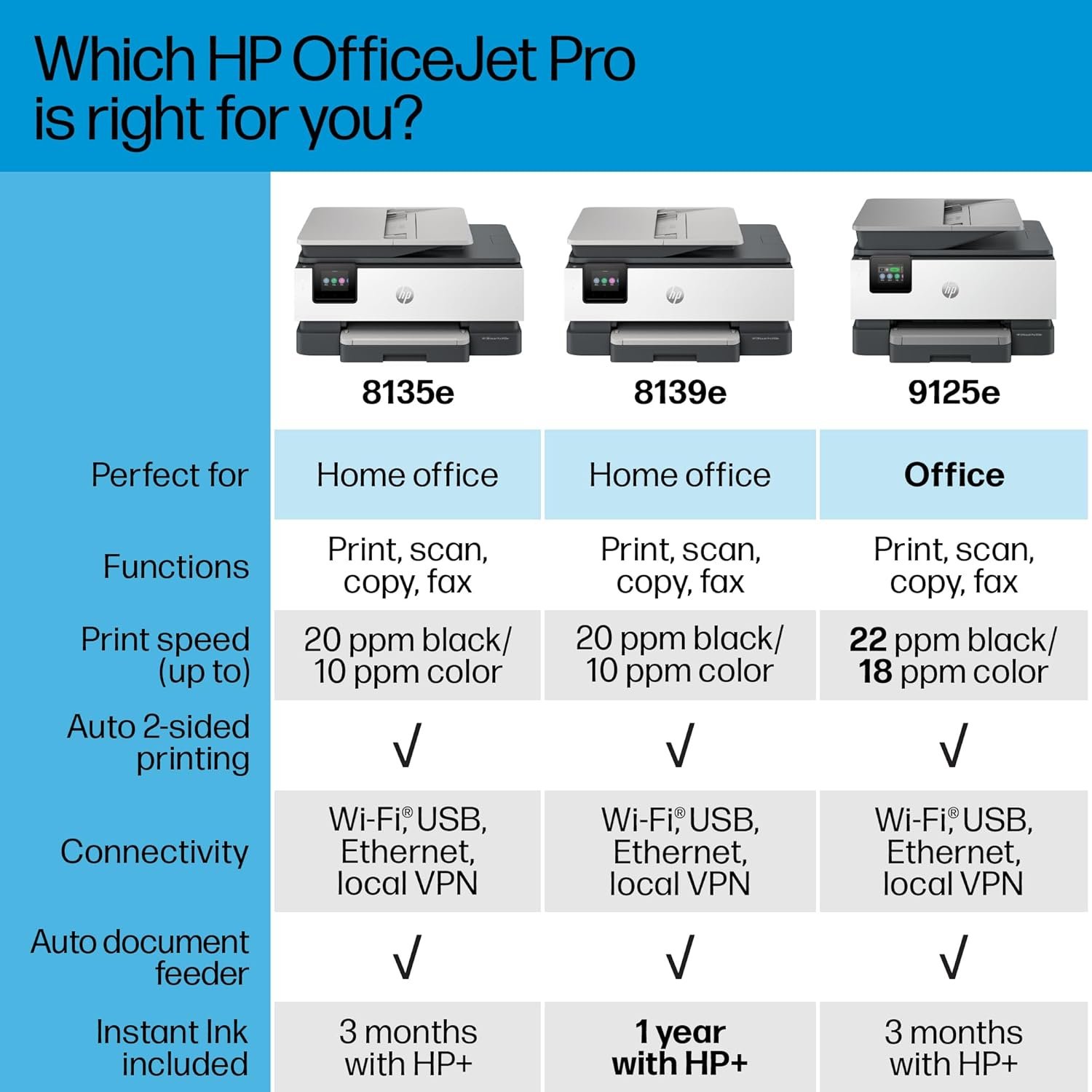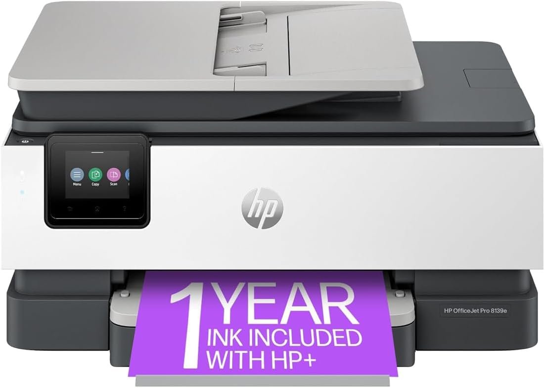 HP OfficeJet Pro 8139e Wireless All-in-One Color Inkjet Printer, Print, scan, Copy, fax, ADF, Duplex Printing Best-for-Home Office, 1 Year of Instant Ink Included