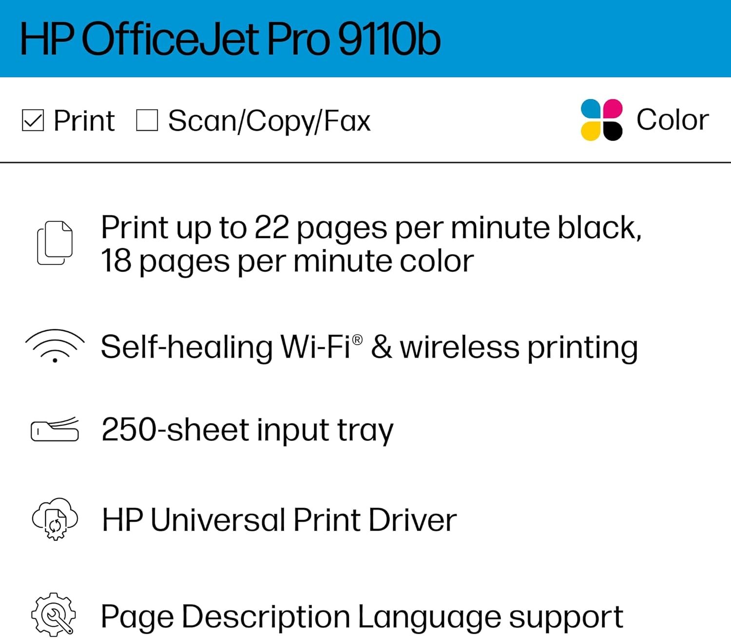 FROM AMERICA’S MOST TRUSTED PRINTER BRAND – The OfficeJet Pro 9110b is perfect for offices printing professional-quality color documents like presentations, brochures and flyers. Print speeds up to 18 ppm color, 22 ppm black. Great for remote teams.