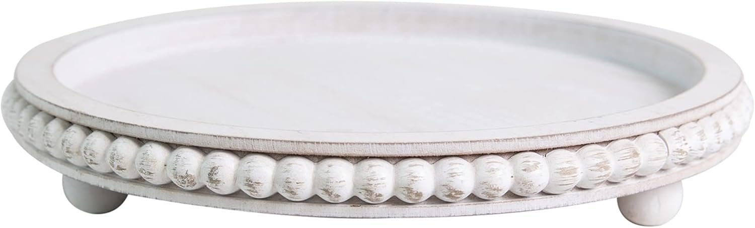 【Gorgeous Beaded Tray】:The round beaded tray features special distressed bead accents.Match these items as living room decor, coffee table decor or farmhouse kitchen decor. The decorative tray itself is surely an eye catching and a conversation piece as it comes with unique bead accents around tray.Place it as a centerpiece on your kitchen counter, dining table, entry way table and MORE!