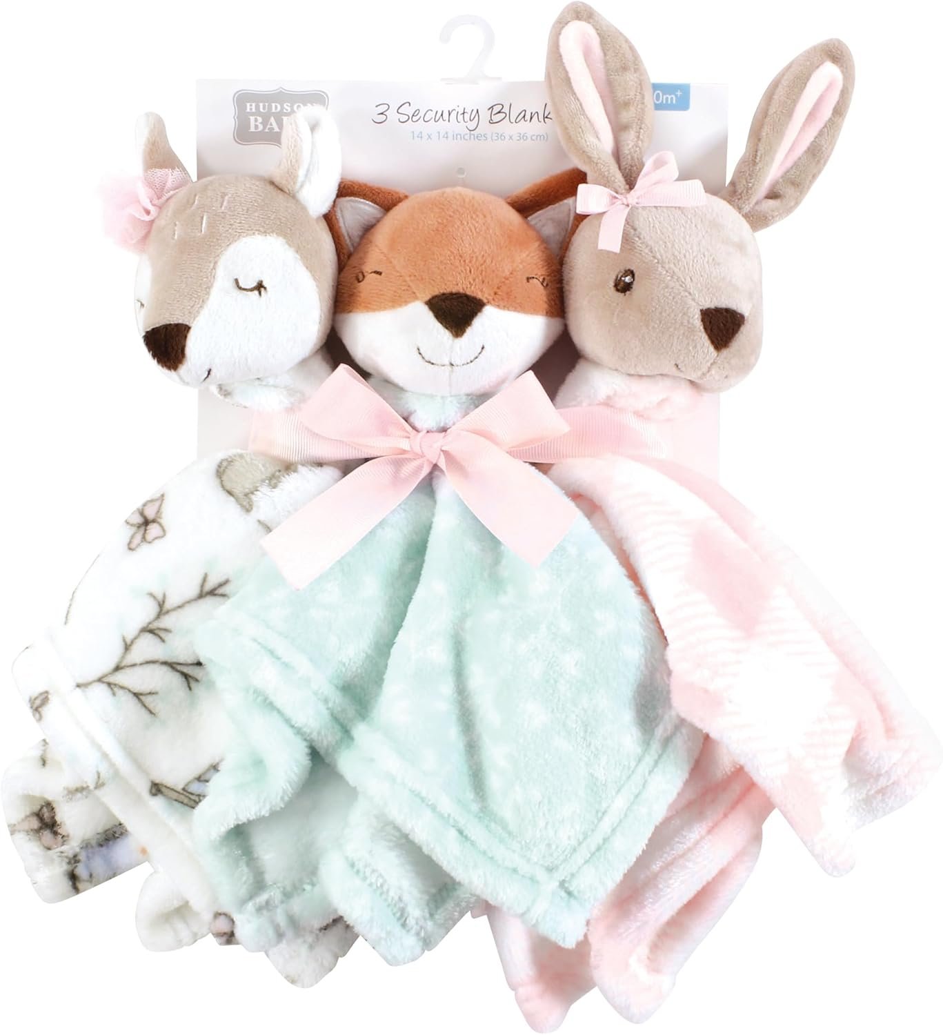 Hudson Baby Unisex Baby Animal Face Security Blanket, Enchanted Forest 3-Pack, One Size