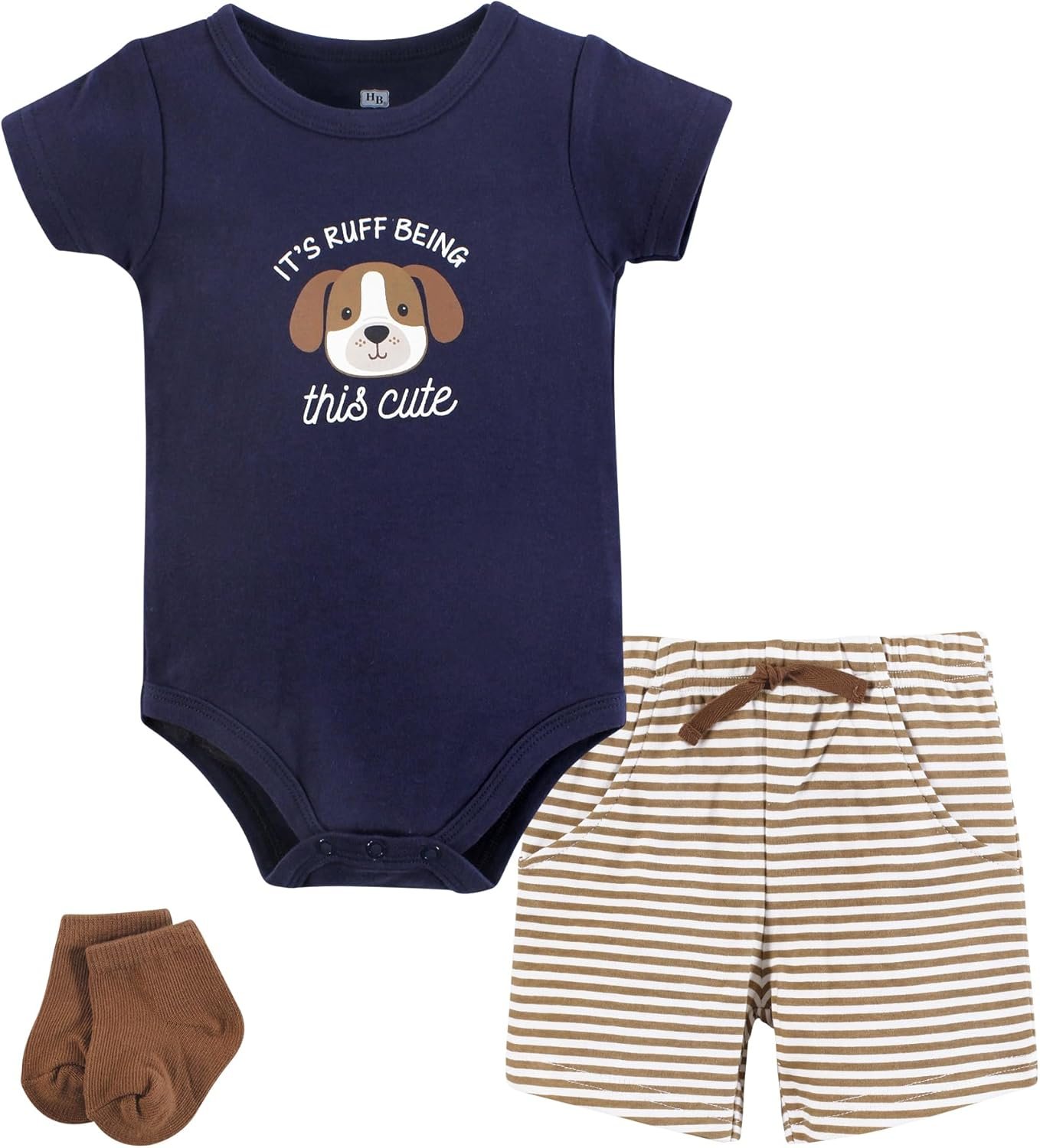 Dress your little one in comfort and style with the Hudson Baby Bodysuit, Shorts, and Sock Set. This adorable three-piece layette set is perfect for newborns and infants, and is available in a variety of sizes to suit your growing baby. The soft and gentle fabric is kind to delicate skin, and the convenient snap closures make for easy changes. This set is a must-have for any new parent’s wardrobe.