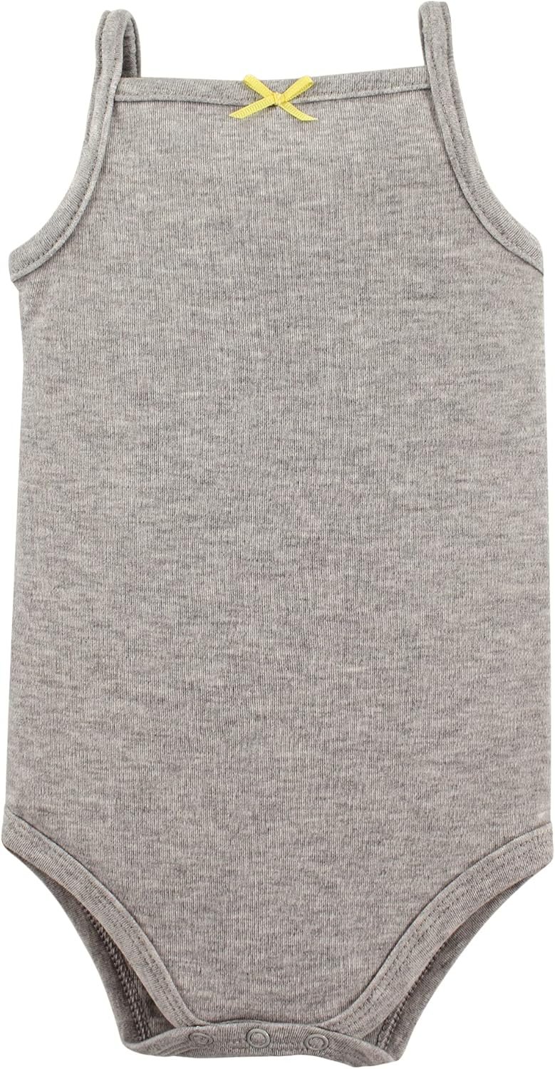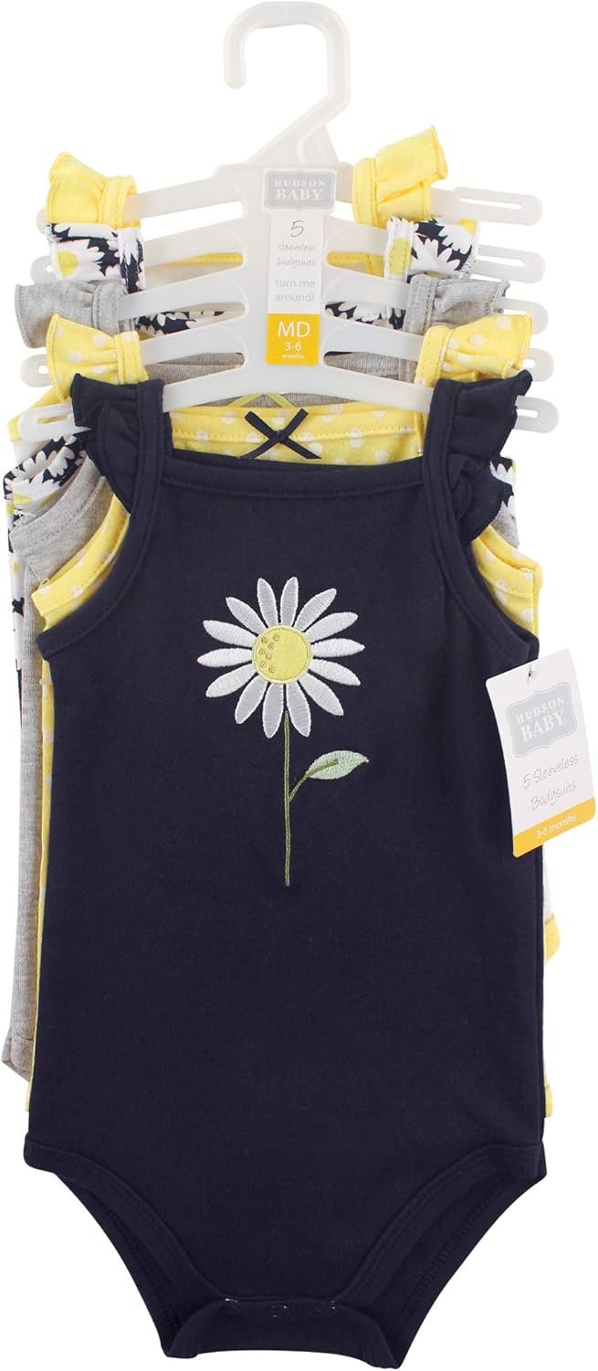 Hudson Baby 5-Pack Hanging Bodysuits are cute baby clothes of 100% lightweight cotton for the softest touch on your baby’s gentle skin. Bodysuits are essential to any baby’s wardrobe, and these bodysuits are so comfortable that they can be used as underwear or even on their own. Assorted with printed designs and sayings, available in boy and girl designs.
