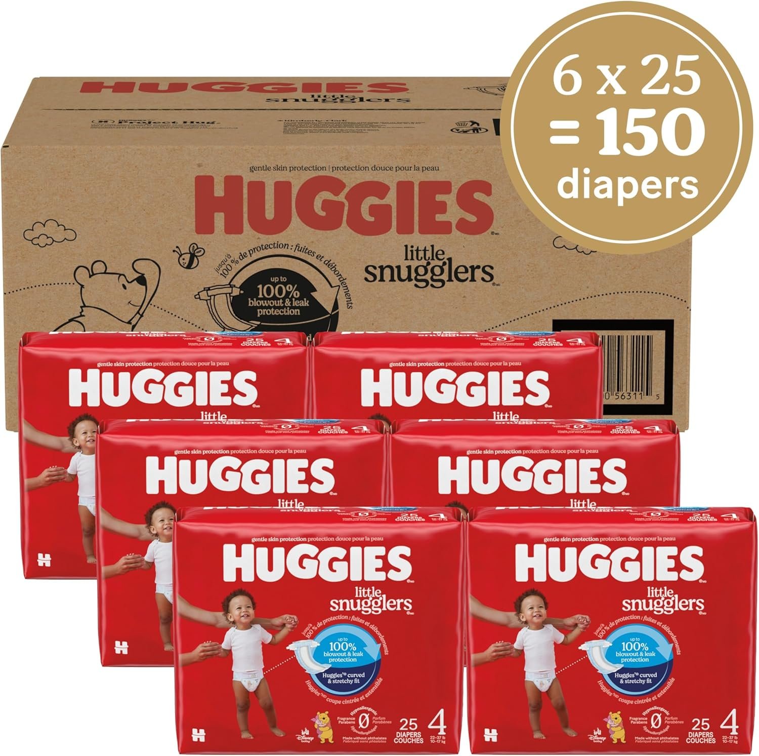 Huggies Size 4 Diapers: 150 Little Snugglers Baby Diapers (6 Packs of 25), size 4 (22-37 lbs), packaging may vary