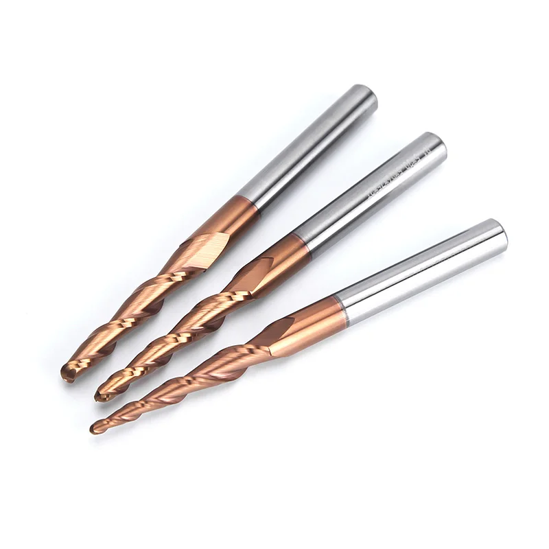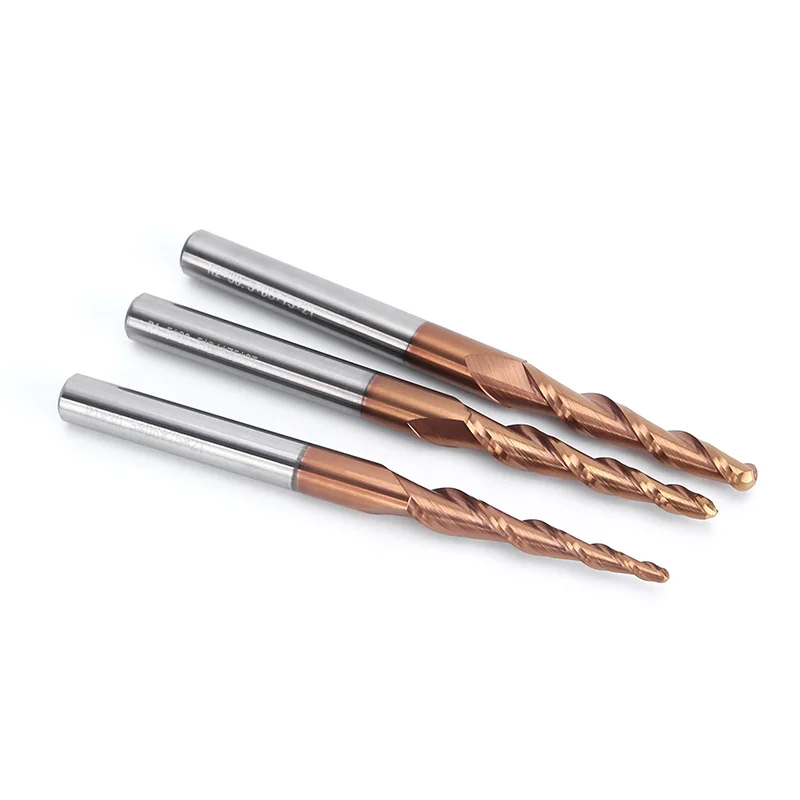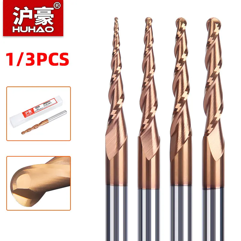 HUHAO 1/3PCS Ball Nose End Mills Spiral Tapered Ball Nose End Mill 3D Carving Bits Carbide CNC Milling Cutter Wood Router Bits