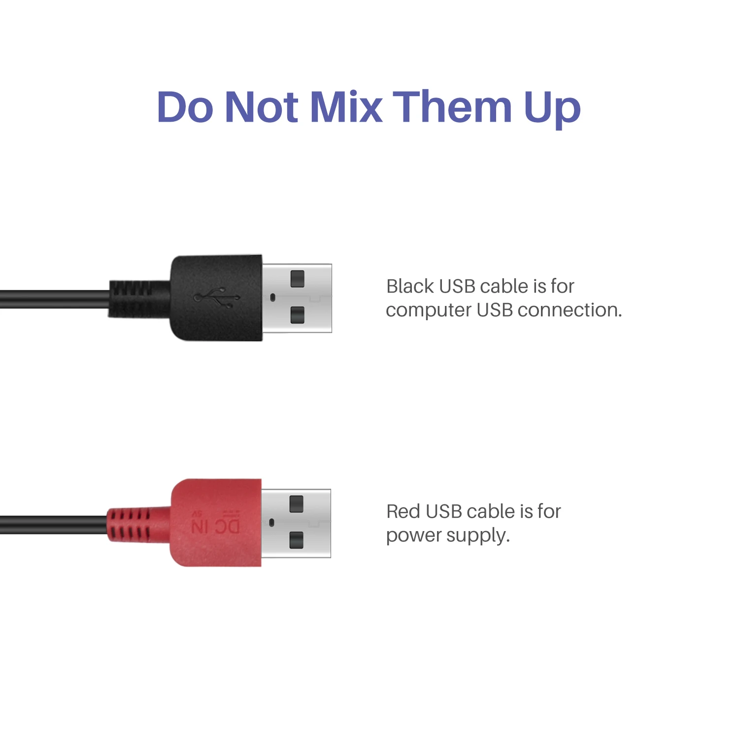 Notice: Do not mix up the red usb cable and the black usb cable.