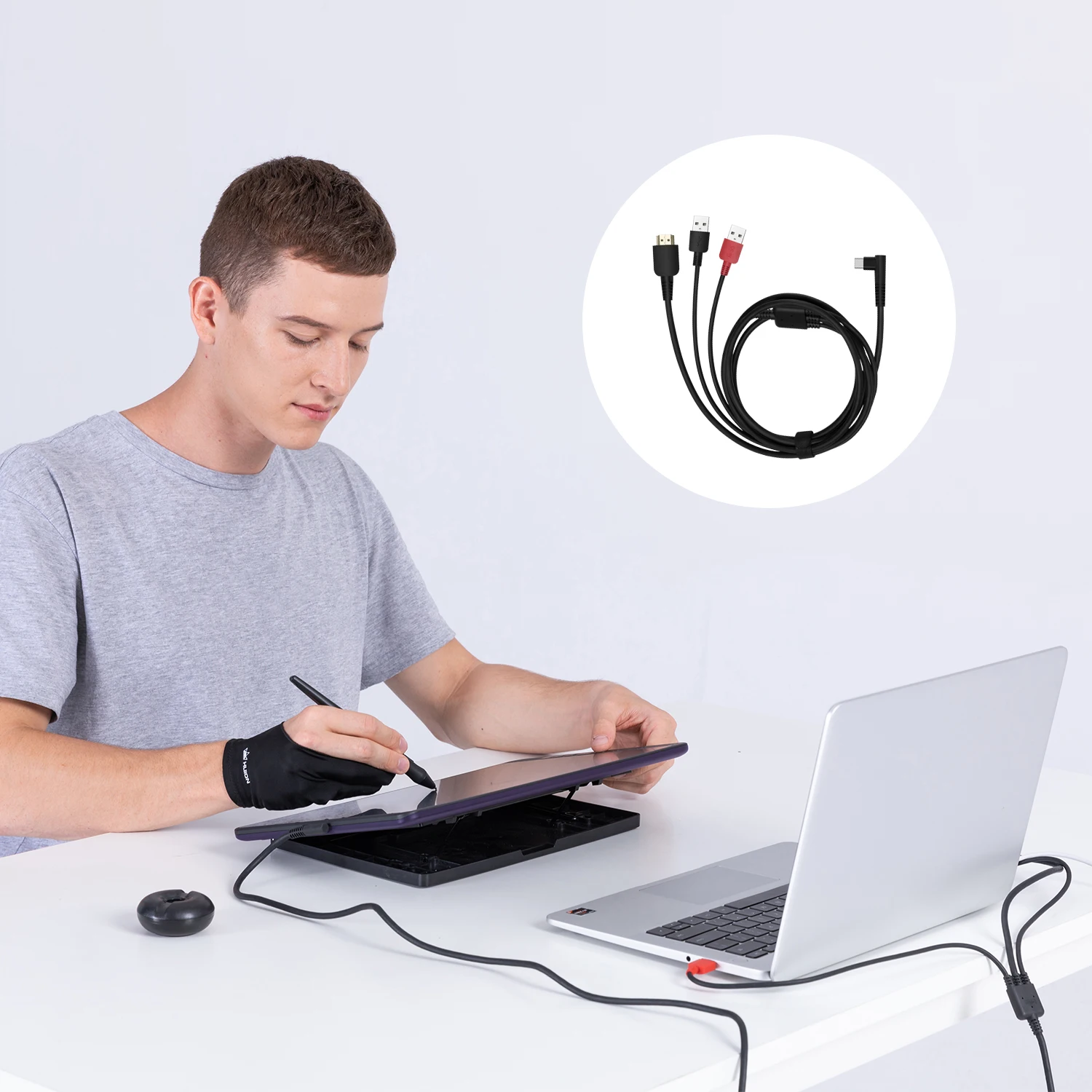 HUION 3 IN 1 Cable for Kamvas 13 Graphics Tablet Monitor Pen Display HDMI DP Signal Type C Port Easy Connection to PC Notebook