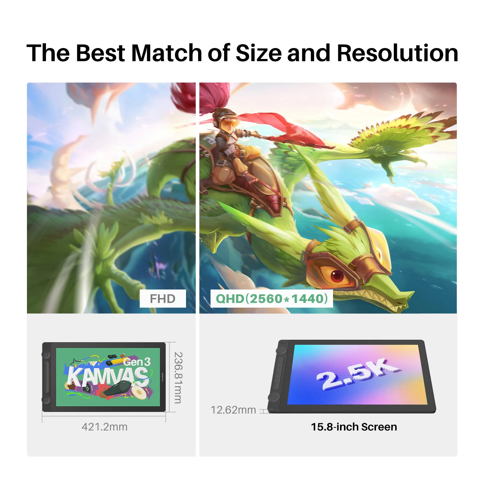 HUION Kamvas 16 (Gen 3) Drawing Tablet with Screen 15.8 Inch Canvas Glass Graphic Drawing Monitor 99%sRGB 16384 PenTech 4.0