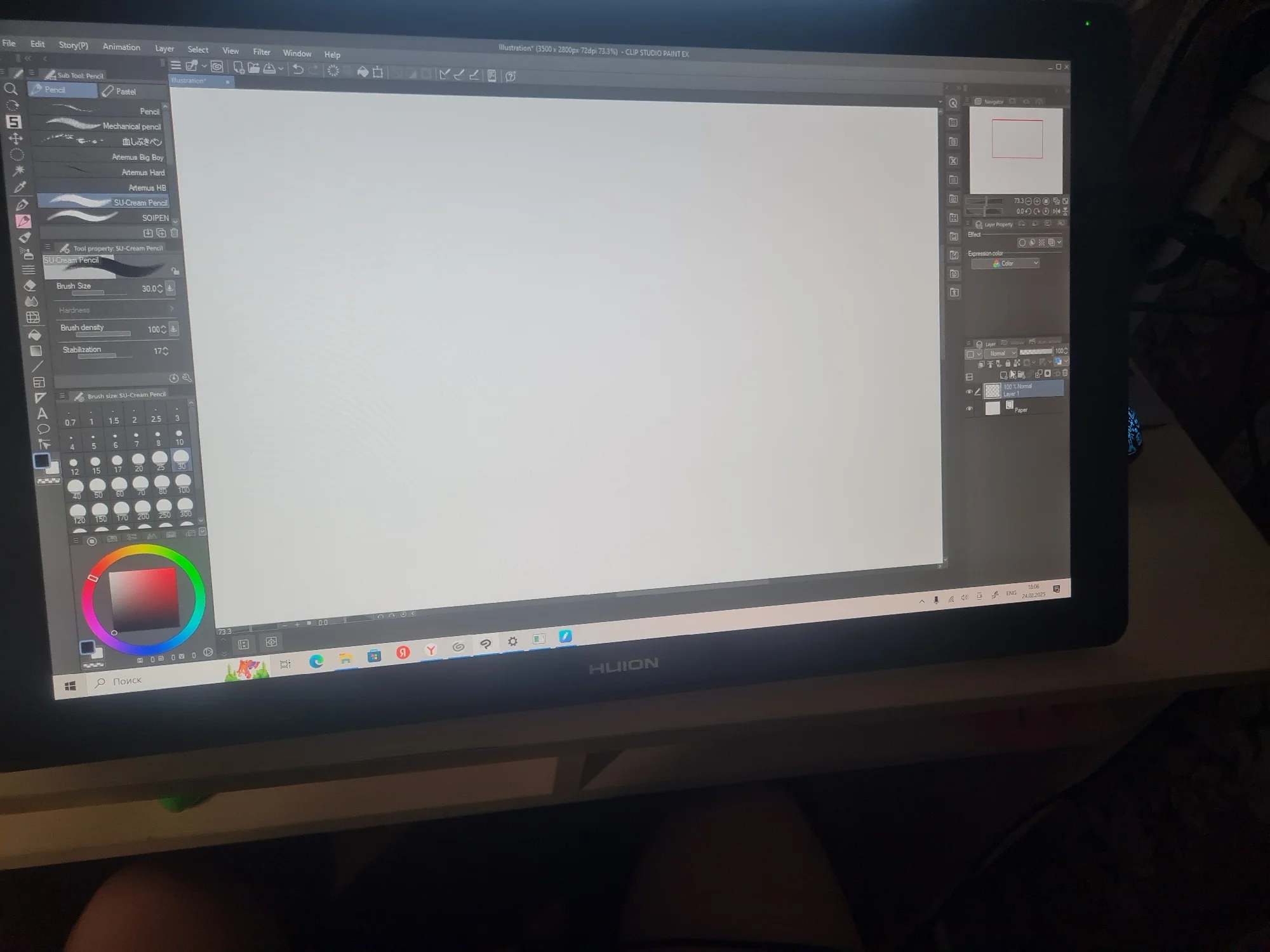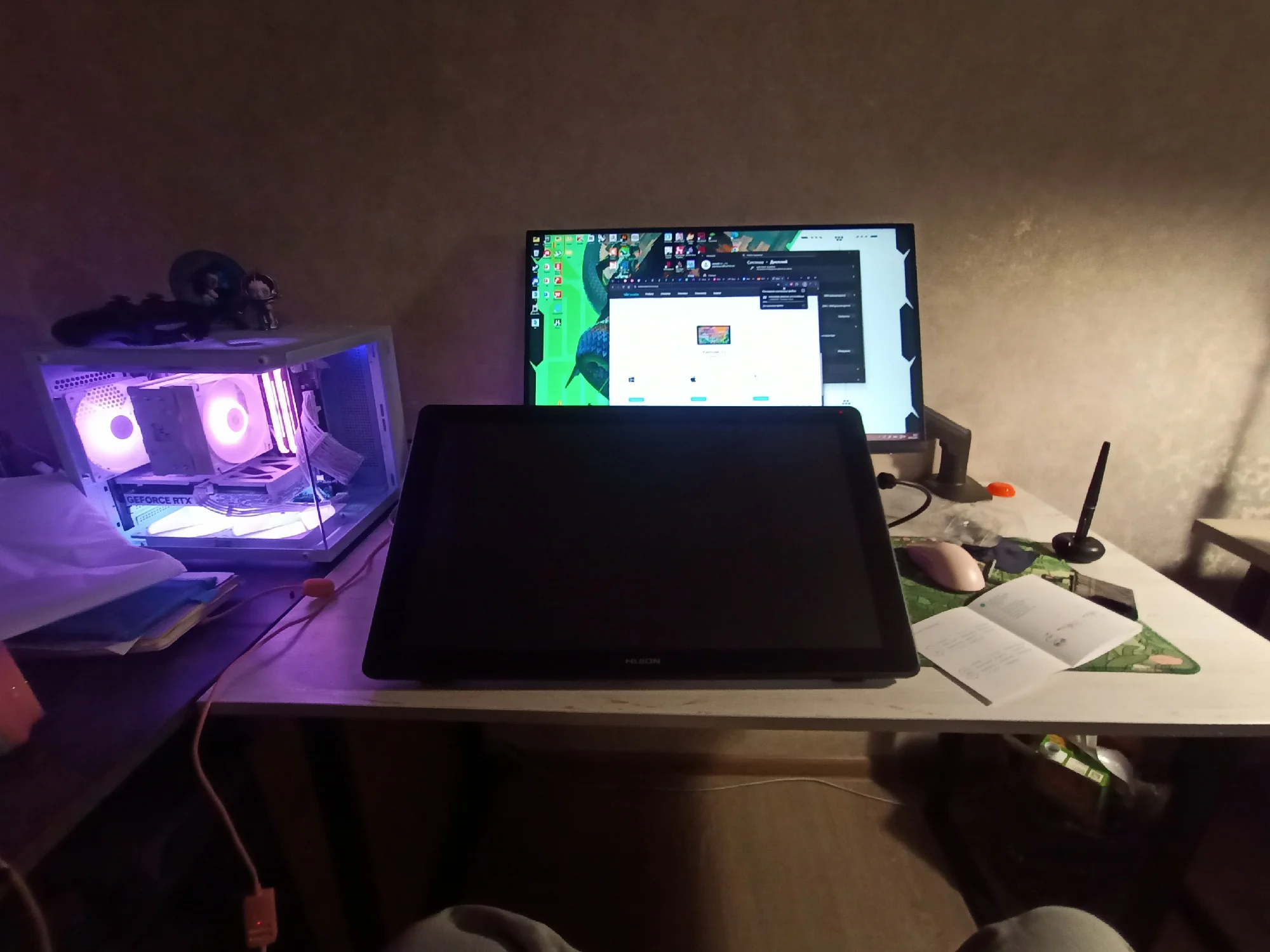 When the tablet arrived, I was delighted! Large space for creativity, smooth screen that feels great to write on with your stylus. The pen settings are simply amazing, all necessary tools are at hand (or rather, under the pen). 😆 ).