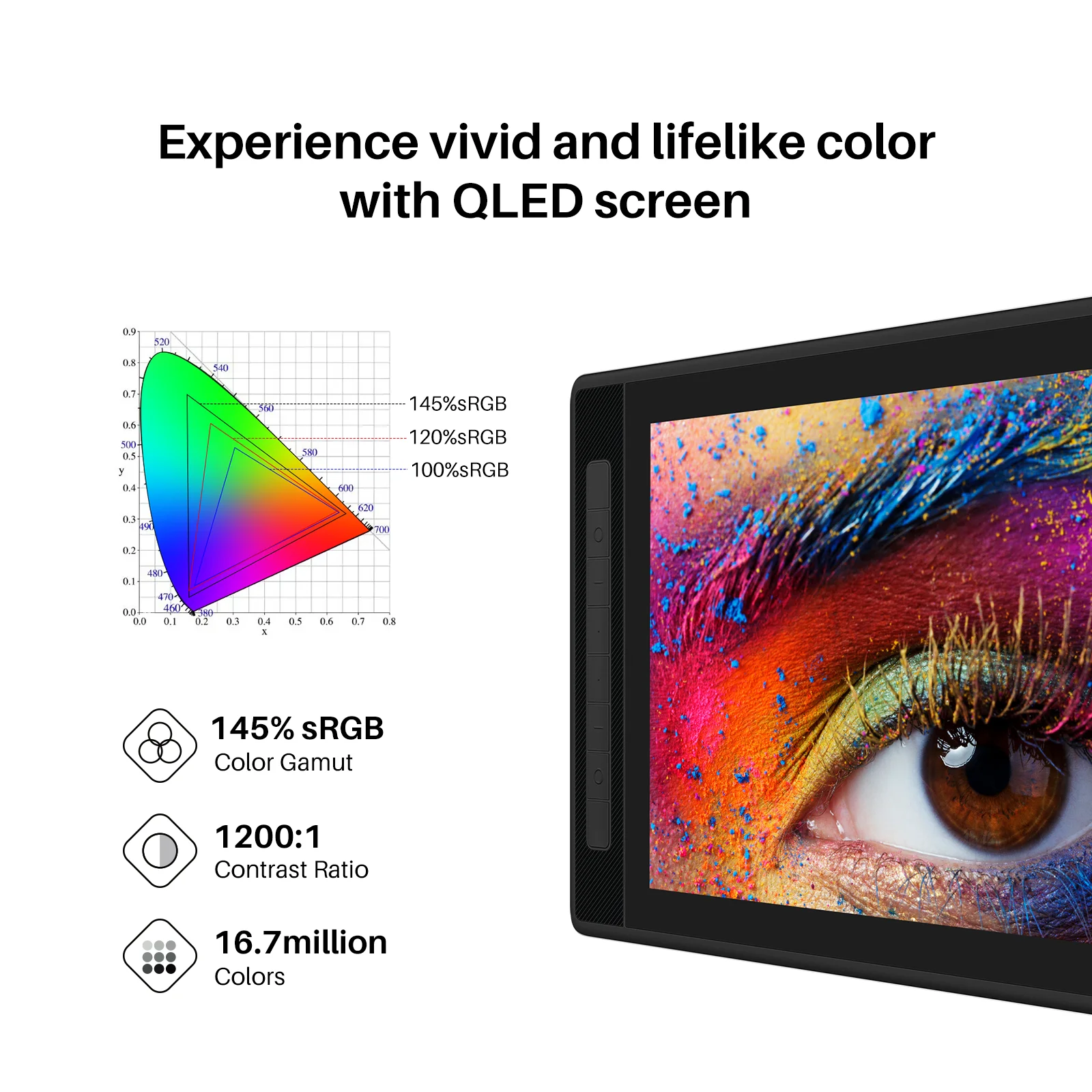 2.5K QHD Screen: The new product improves the resolution to 2.5K, which doesn̢۪t require that high computer configuration and it can function well in most users̢۪s computer. Besides, 2.5K resolution in 15.8 inch screen can present the picture and text in proper size, reducing visual fatigue and providing a comfortable creating experience.