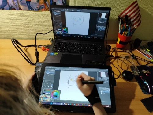 A wonderful screen protector) suitable for both professionals and beginners, very convenient design and software. At first there were problems because it turned out that the installed scale in Windows 11 affects the correct operation. For example, on my main screen, I have the zoom set to 125 percent because on a 34-inch UW monitor, everything looks small due to the large number of pixels. When connecting the screen, Windows initially set the recommended scale to 150 percent. This caused lags and inability to read the pen precisely in the working area of Krita and Clip Studio; otherwise, it always worked as it should everywhere else. To avoid such situations, make sure that your firewood is the freshest available and also that the scale in the display settings of the WINDOWS itself is the same on both the monitor and the tablet, and may you be blessed.