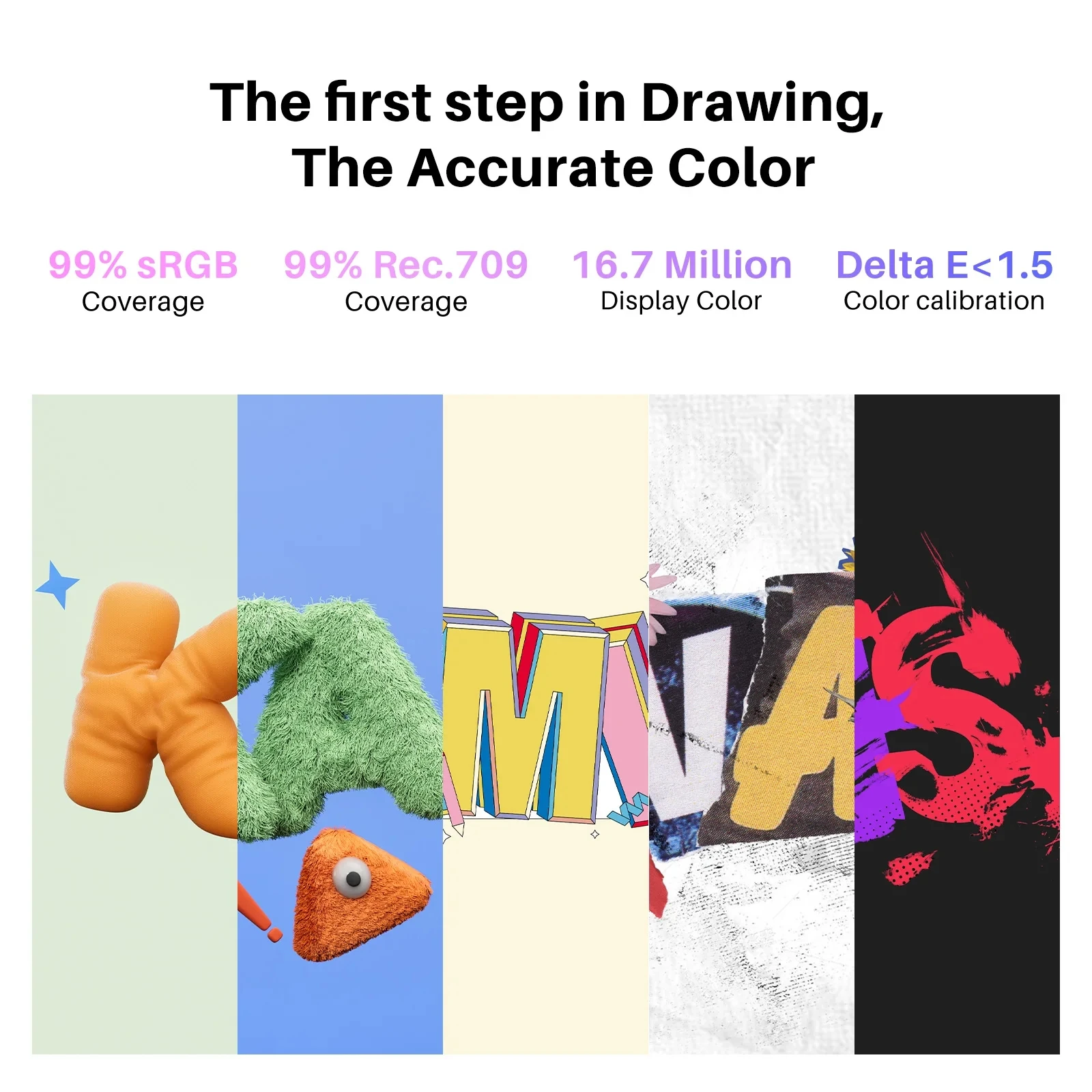 13.3 Inch FHD Screen, Light and thiner; 16K Levels pen pressure, Pen Tech 4.0. 99%sRGB / 99%Rec.709 / 90%Adobe RGB Color Gamut Coverage. Sakura Pink and Cosmo Black for choice.Â