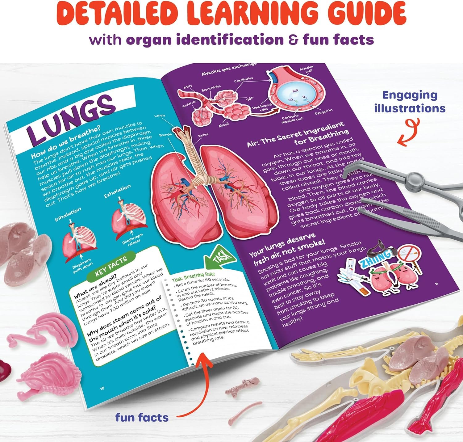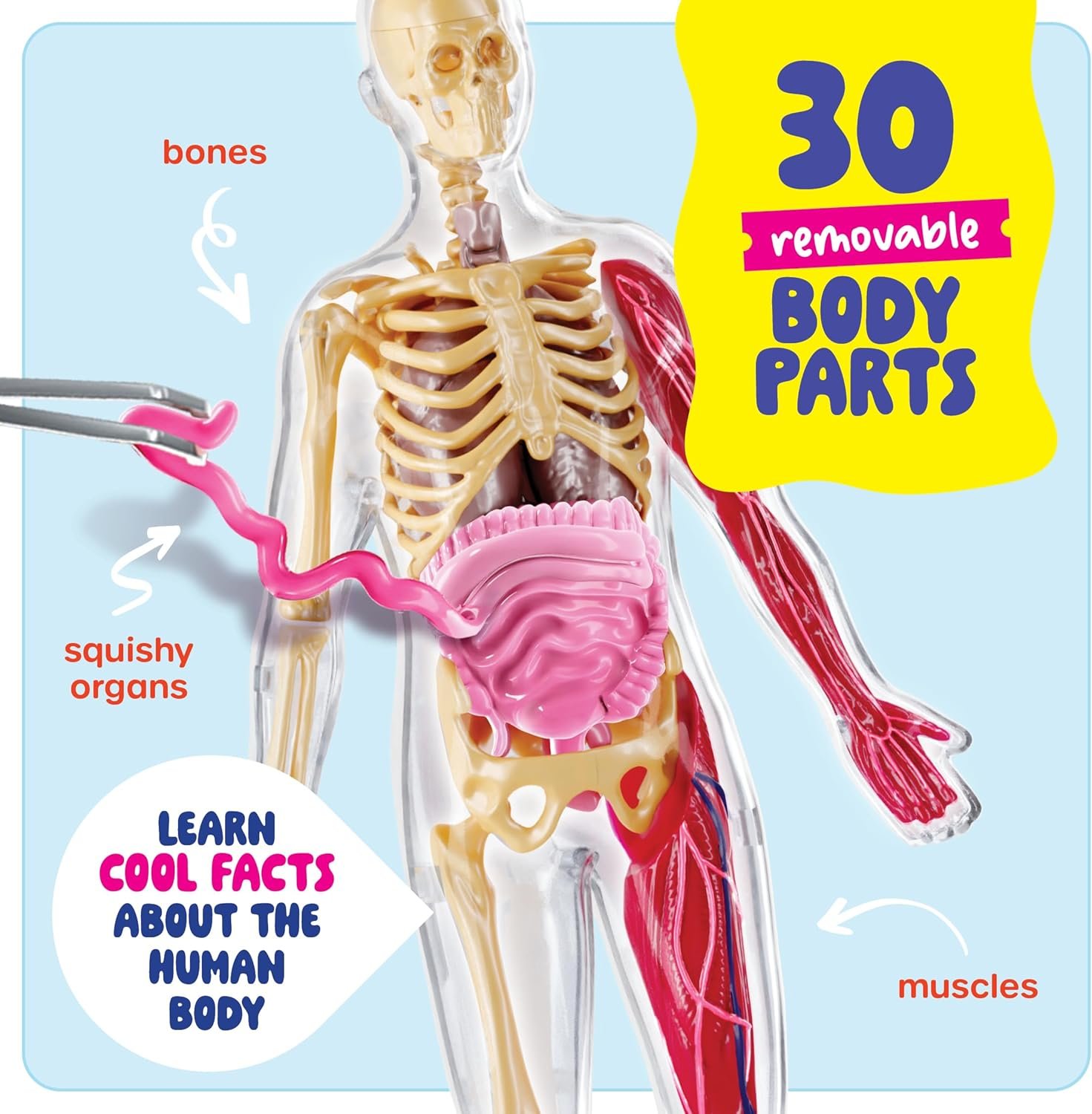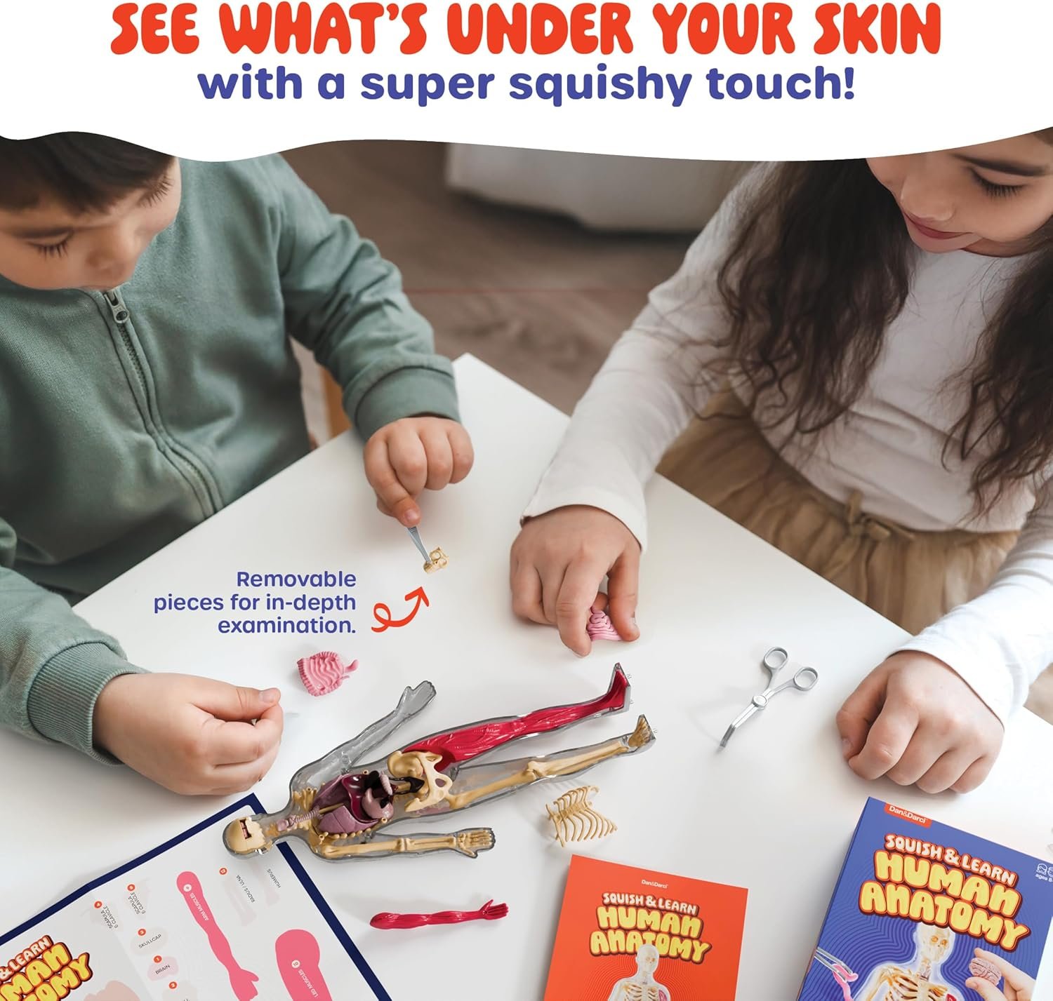DISCOVER THE HUMAN BODY — SQUISHY, GOOEY, & REAL: Dive into super squishy, stretchable, and totally realistic anatomy! Take apart 30 removable body parts, including the brain, heart, lungs, ribs, trachea, fibula, and even a gooey stomach and flexible spine! Feel the textures, see how everything connects, and rebuild the body — because science has never been this fun or this hands-on!