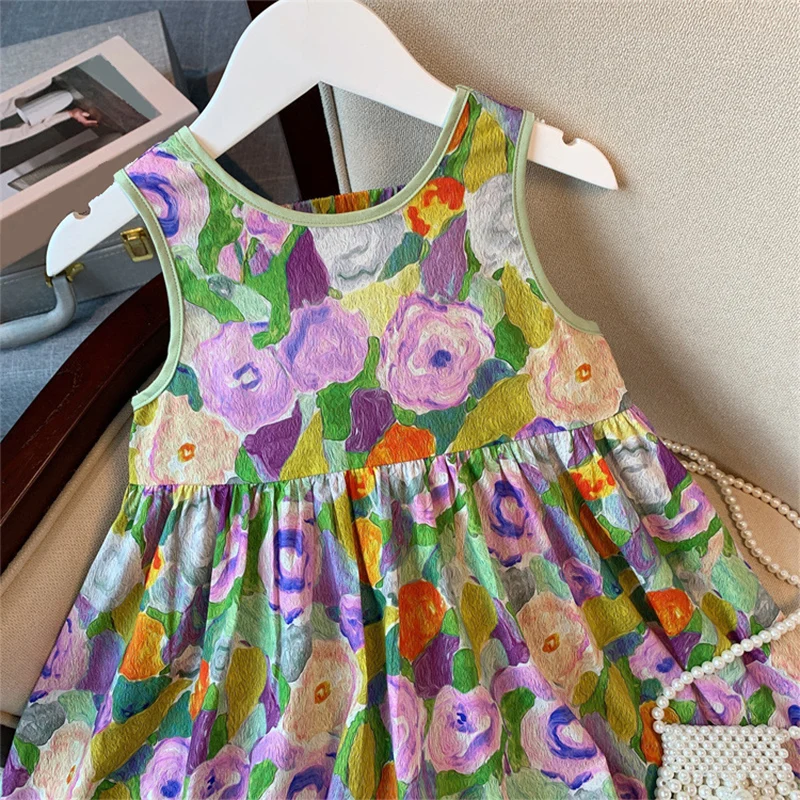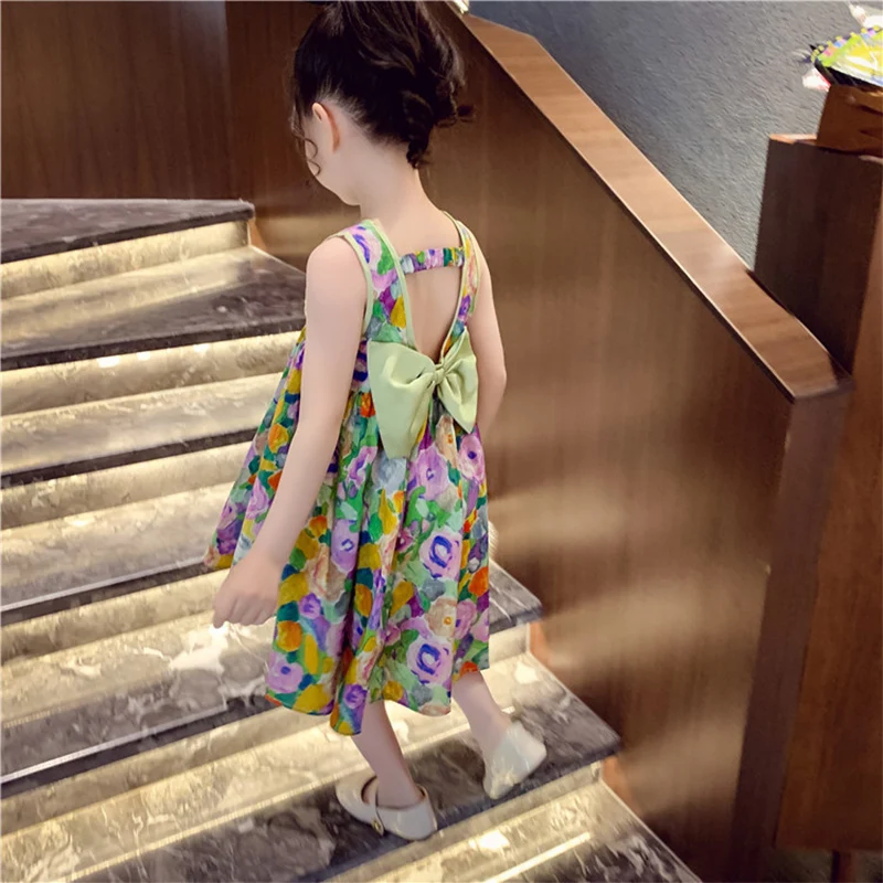 4 reviews for Humor Bear Kids Clothes Oil Painting Wind Dress Sweet Princess Skirt Floral Sundress Back Bow Princess Dress Girl Dress For 3-7Y