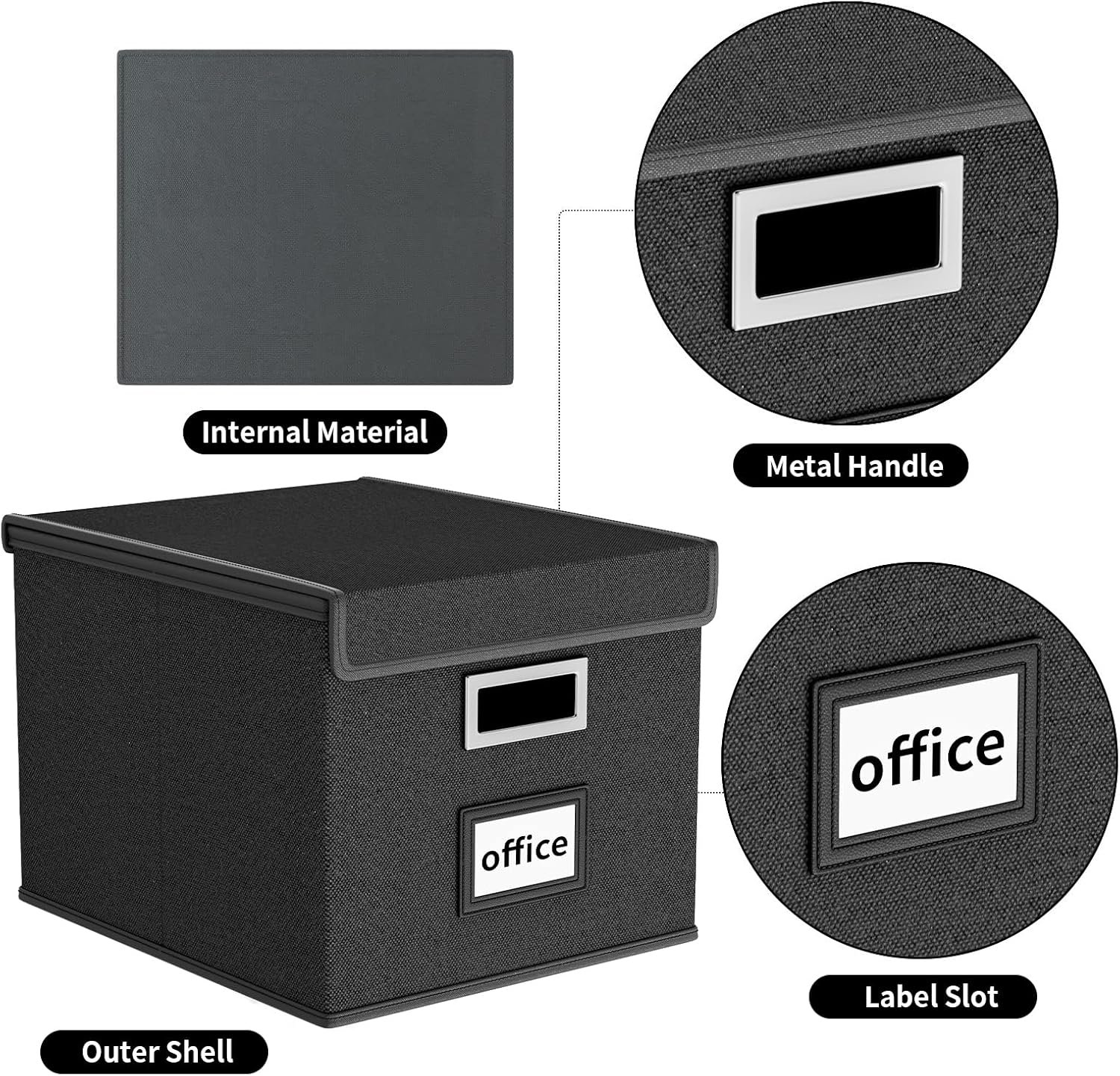 Huolewa Upgraded Portable File Organizer Box, Large Linen Hanging Office Document Storage Box with Lid – Black, Collapsible Filing & Storage Boxes for Office/Decor/Home – 14.9 x 12.59 x 10.8 inch
