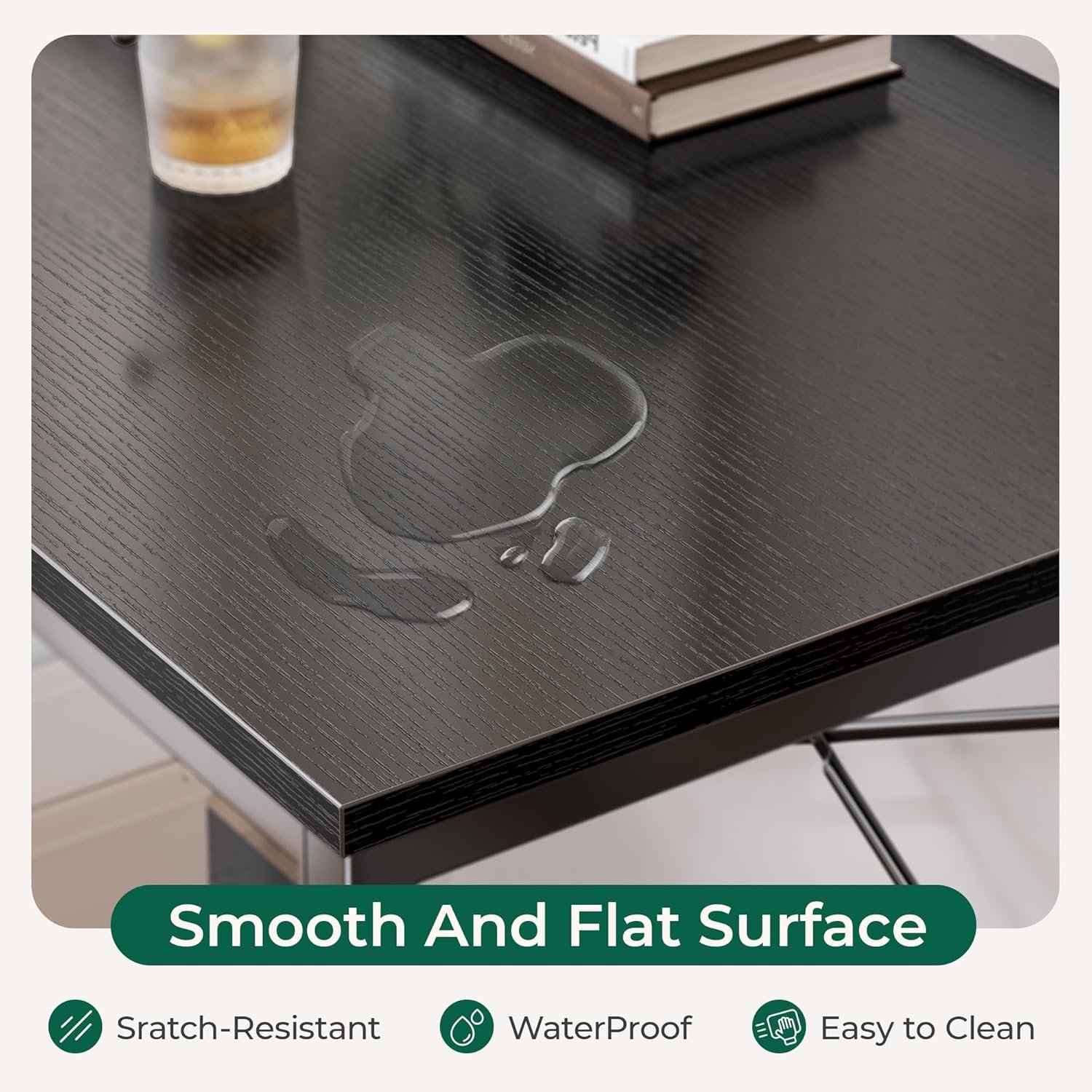 【Balanced Adjustable Feet & X Bars】: With adjustable feet under the work desk for home office, whenever you work or game on the desk, no wobbling worries. Reinforcing X-bars enhance the structure’s stability, while the sleek black surface not only exudes elegance but also wipes clean effortlessly with a damp cloth