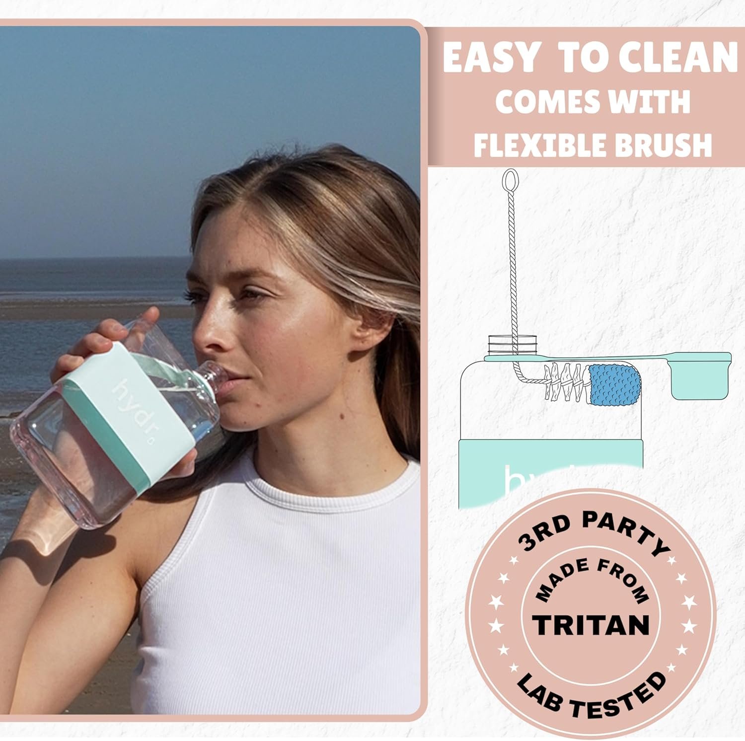 Comes with a flexible stainless steel nylon brush making cleaning this water bottle skinny a breeze.