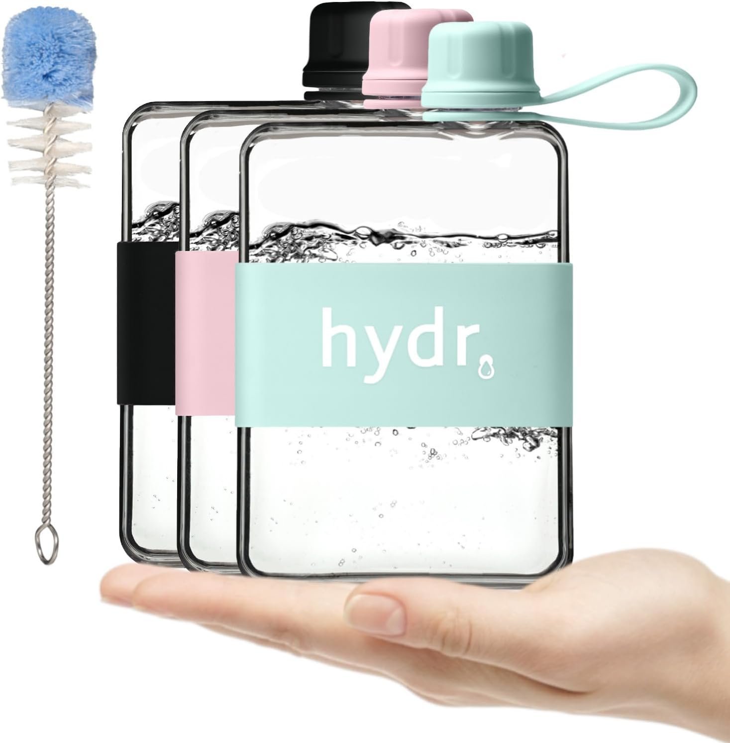 hydr | 17oz Flat Water Bottle For Purse & Flexible Cleaning Brush | Tritan BPA Free Square Water Bottle | Leak/Drop Proof Slim Water Bottles For Travel, small water bottles, mini water bottles