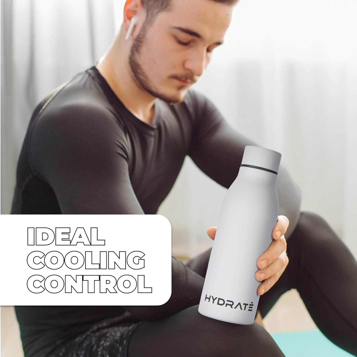 HYDRATE Water Bottle – Insulated Stainless-Steel Water Bottle – Travel-Friendly Lightweight Gym Drinking Flask- BPA Free, Leakproof with Lock – Grey