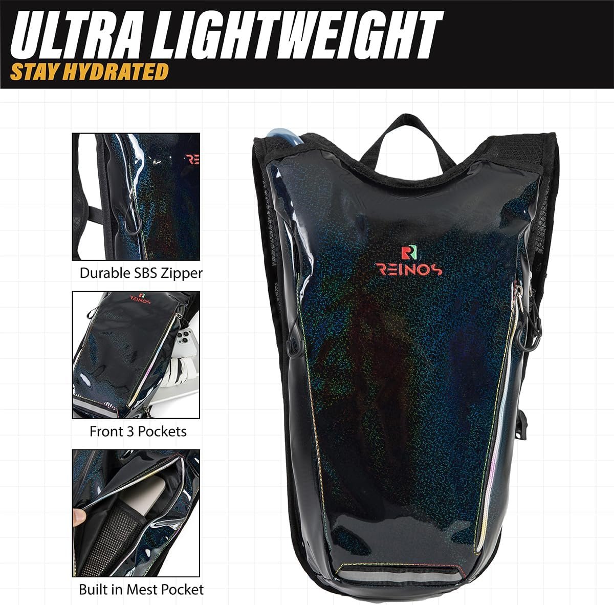 UNIQUE DESIGNS & PRACTICAL – Stand out in the crowd at music festival, edm, rave, or edc event with this ultra lightweight water resistant hydration pack backpack.