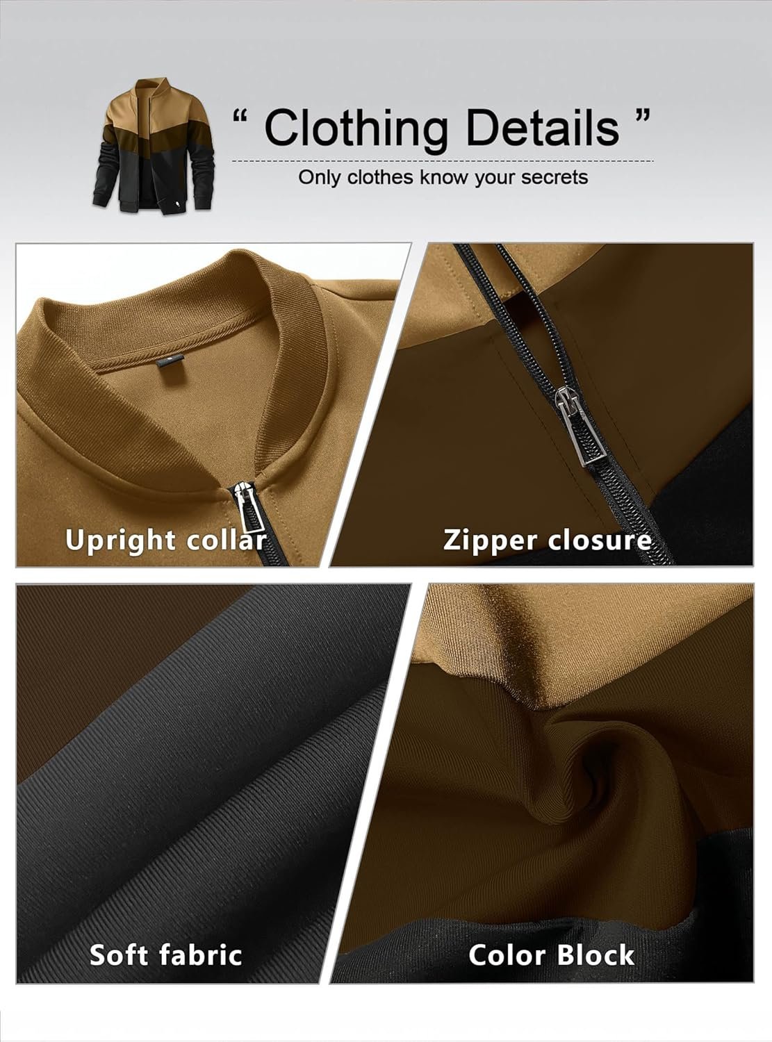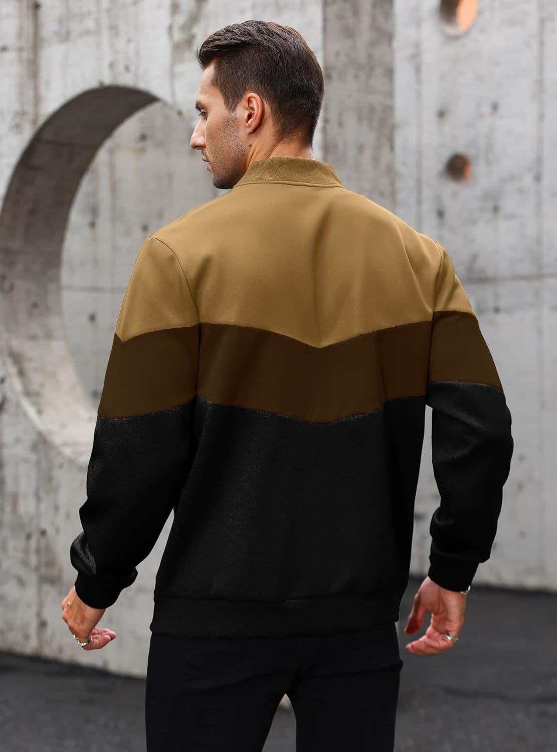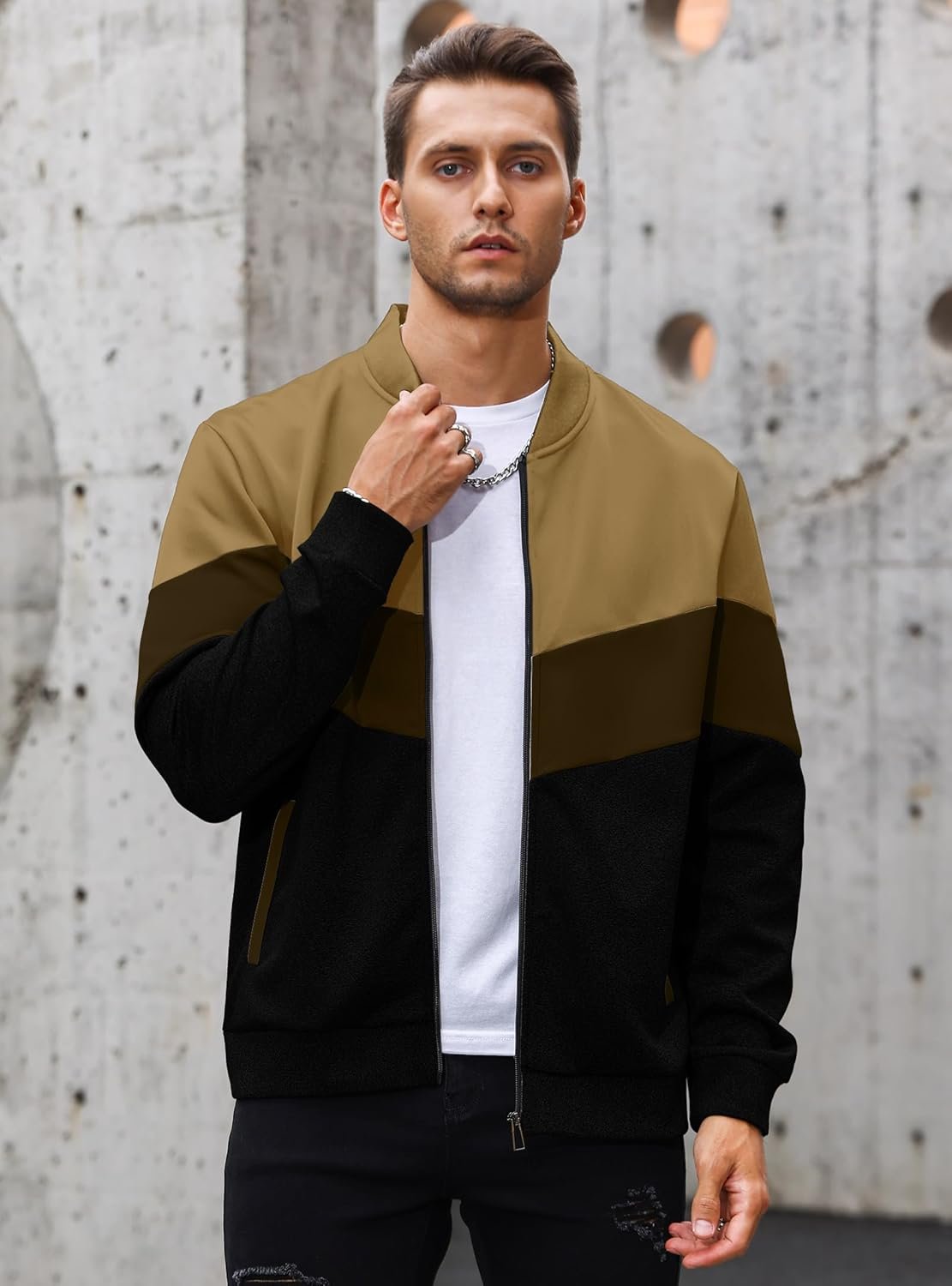 HYPESTFIT Mens Lightweight Jacket Casual Bomber Jacket Color Block Varsity Coat