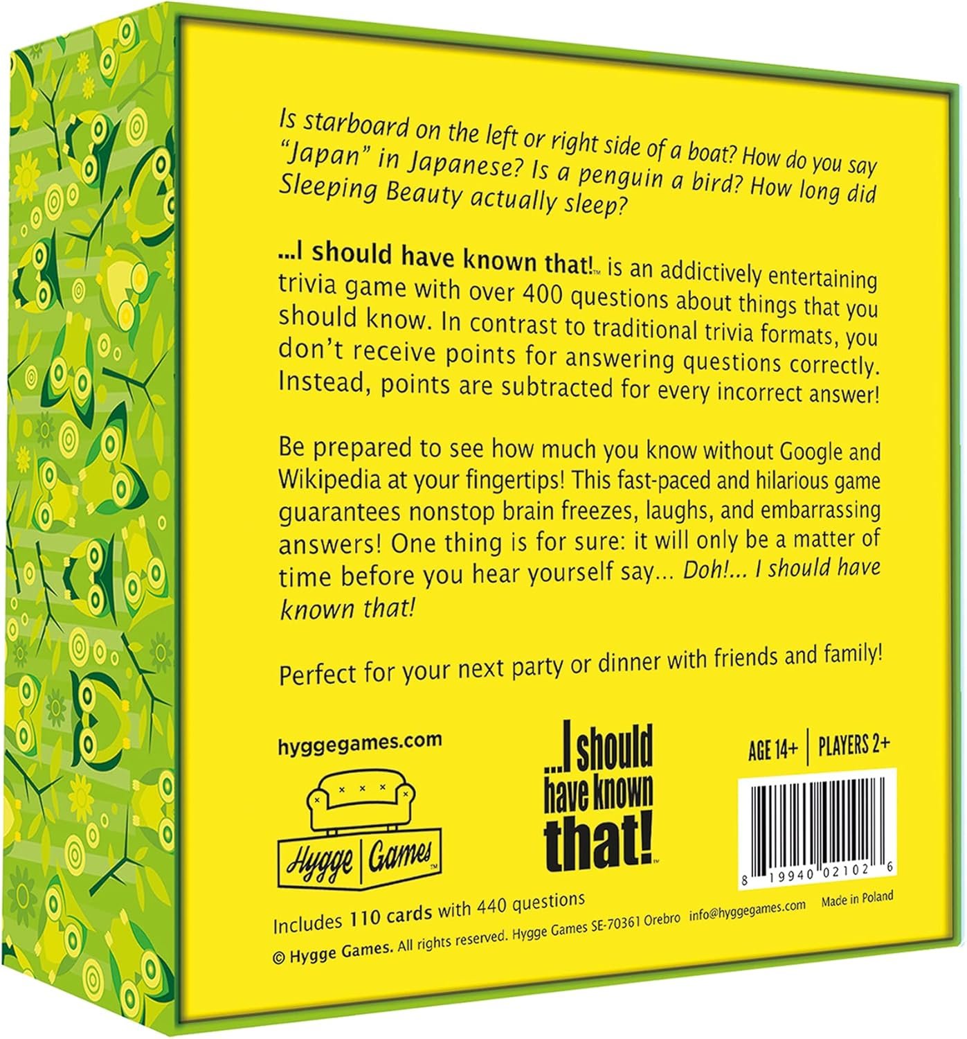 Is Starboard On The Left Or Right Side Of A Boat? How Do You Say “Japan” In Japanese? Is A Penguin A Bird? How Long Did. Sleeping Beauty Actually Sleep? I Should Have Known That! Is An Addictively Entertaining Trivia Game With Over 400 Questions About Things That You Should Know. In Contrast To Traditional Trivia Formats, You Don’T Receive Points For Answering Questions Correctly. Instead, Points Are Subtracted For Every Incorrect Answer! Be Prepared To See How Much You Know Without Google And Wikipedia At Your Fingertips! This Fast-Paced And Hilarious Game Assures Nonstop Brain Freezes, Laughs, And Embarrassing Answers! One Thing Is For Sure: It Will Only Be A Matter Of Time Before You Hear Yourself Say Doh! I Should Have Known That!Perfect For Your Next Party Or Dinner With Friends And Family!