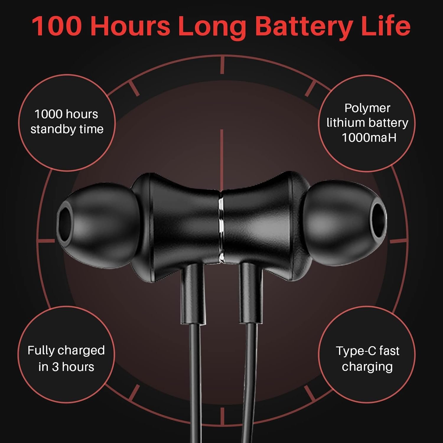 charge for 3 hours, listen to music for 120 hours; 1000 hours long standby bass earphones