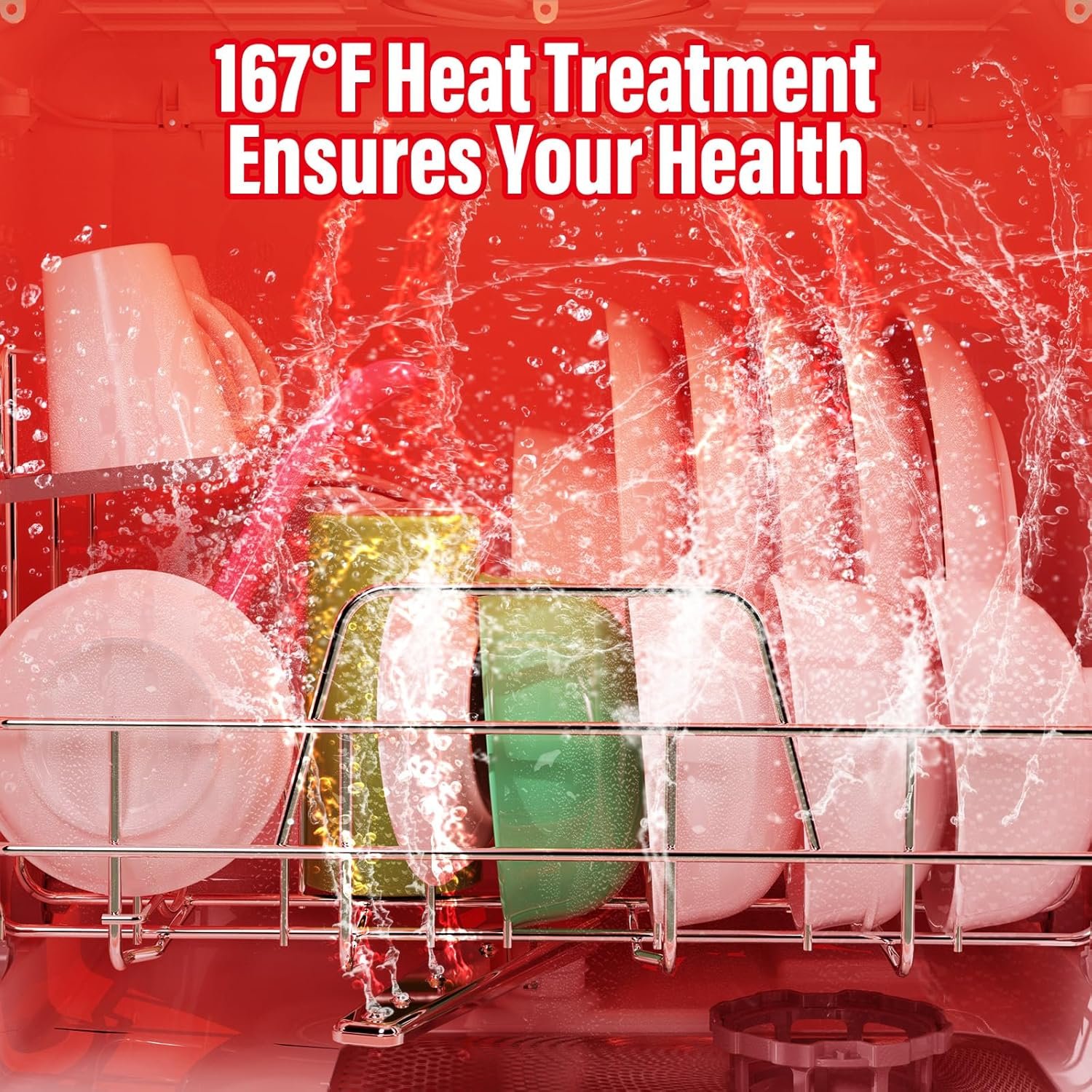 Dual Spray Arm: This mini dishwasher uses upper and lower dual spray arms and 360-degree rotating spray, the dirt of cleaning tableware to the greatest extent, you can get the shiny tableware after opening the lid.
