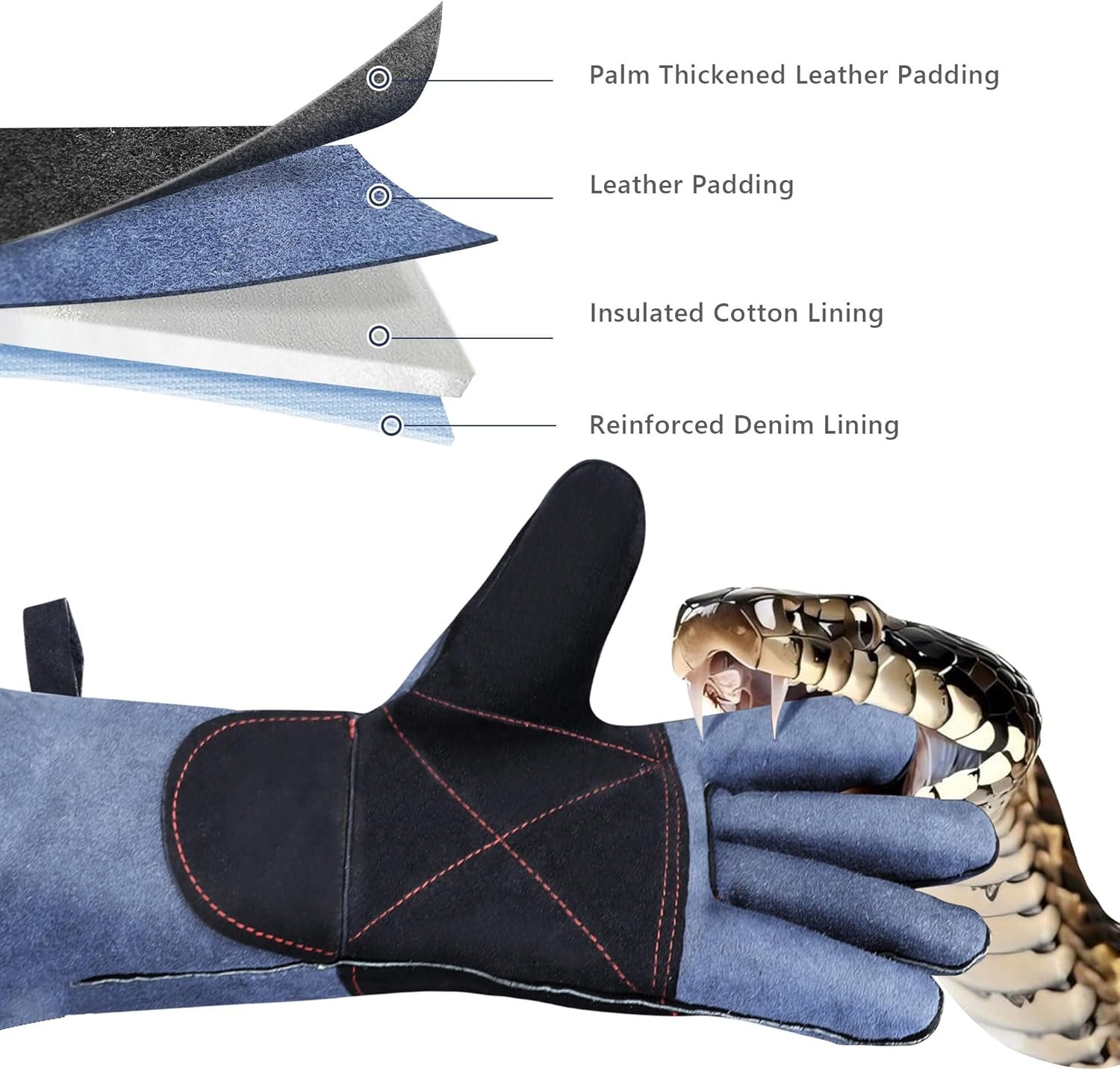 IC ICLOVER Animal Handling Gloves Snake Bite Proof, Double Leather Padding, Anti-bite Dog Cat Bird Reptile Control Protection