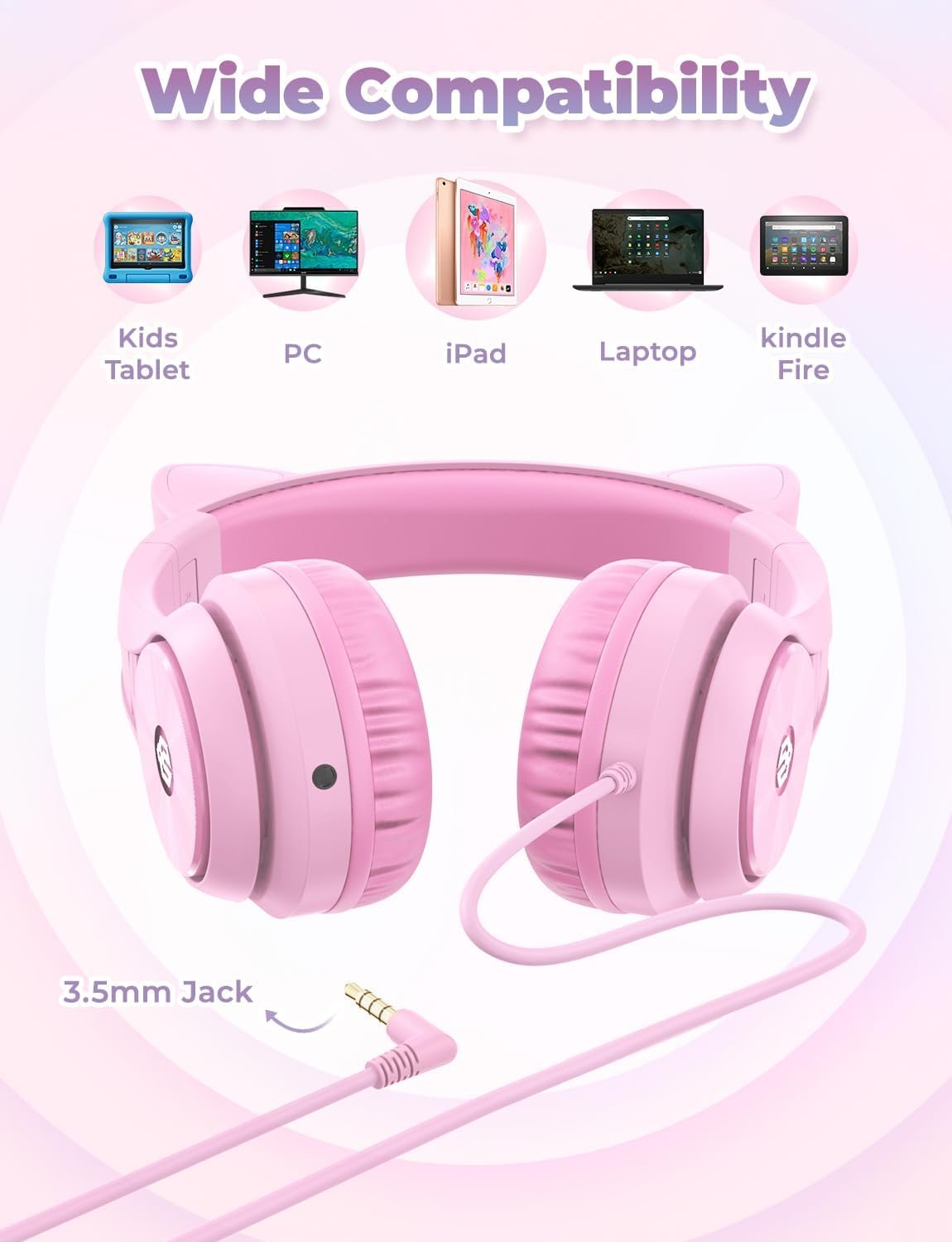 The standard 3.5mm jack makes this wired headphone universal fit and available to most devices, like iPad, Kindle Fire, Chromebooks, Kids Tablets etc.