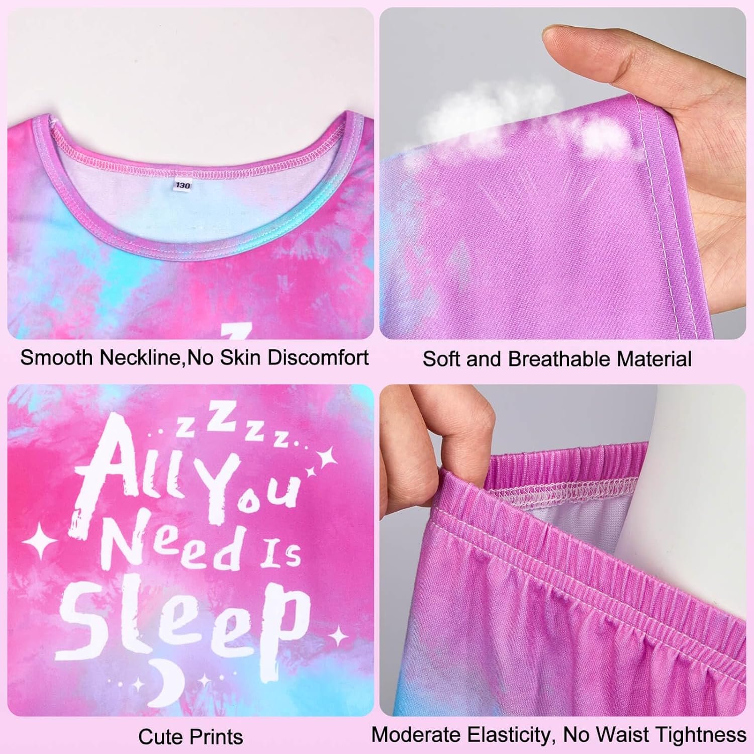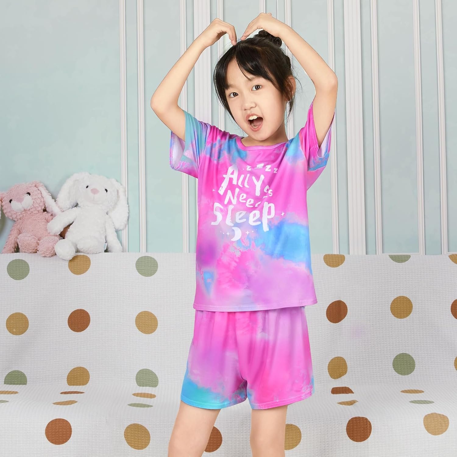ICOSY Girls Pajamas Set for Kids Pajamas 2 PCS Short Sleeve Top and Shorts for Toddler Girls Clothes Size 8-14