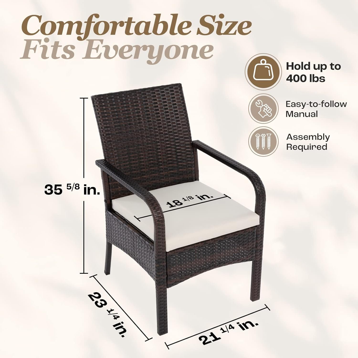 400LBS DURABLE FRAME: The patio dining room chairs feature an electrostatic steel frame that withstands rust and corrosion, ensuring durability outdoors; Each wicker chair holds up to 400 pounds, ideal for table and chairs setups