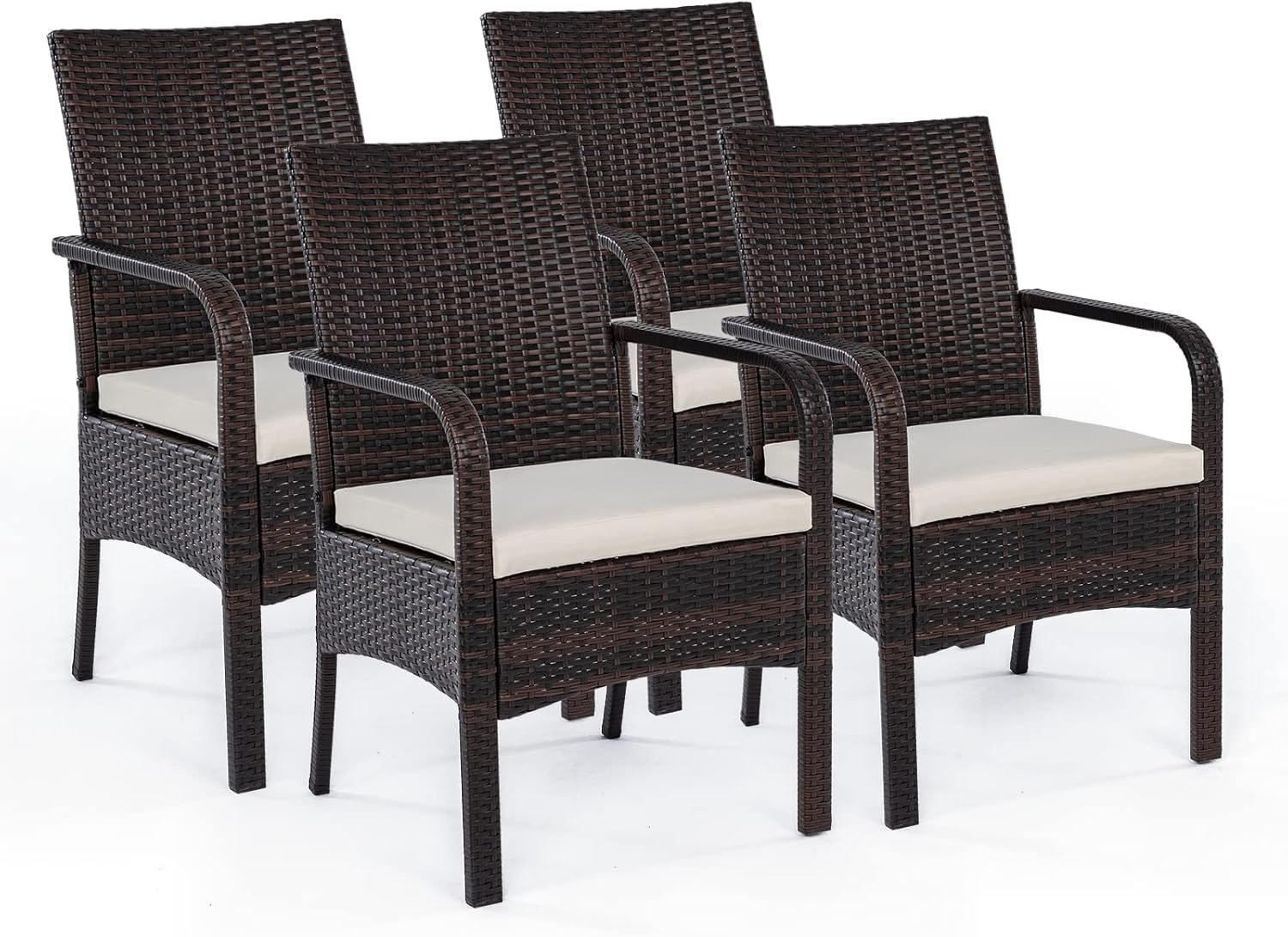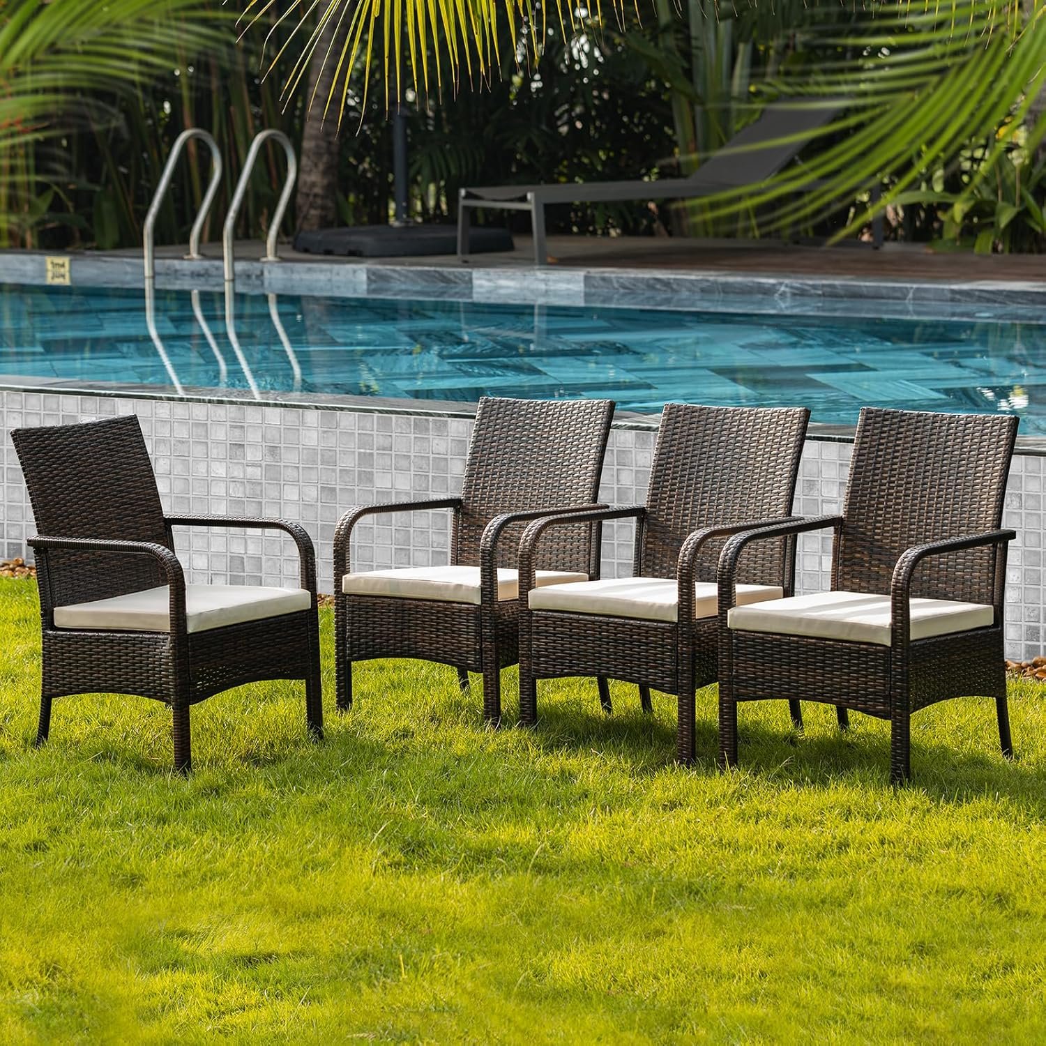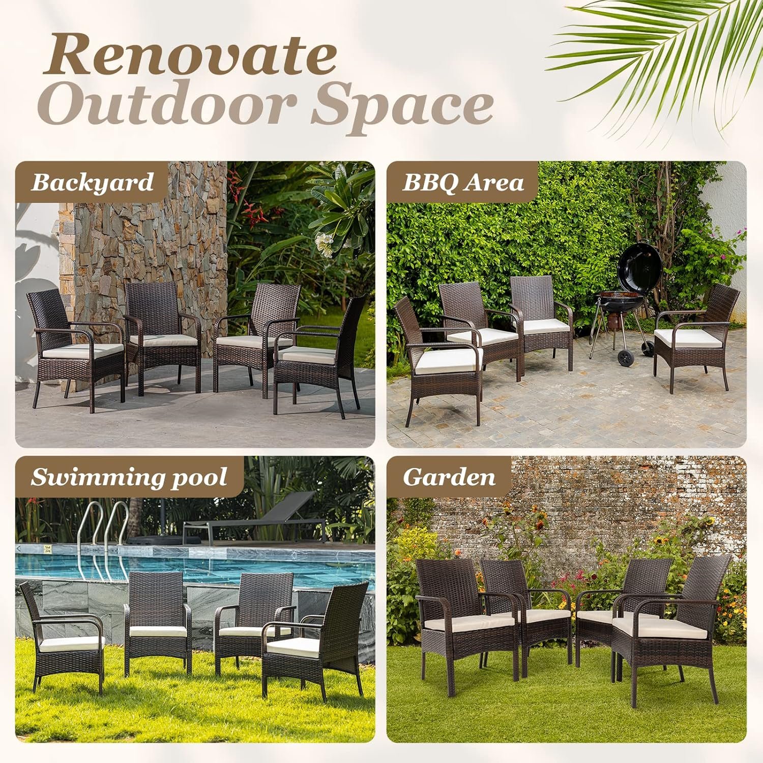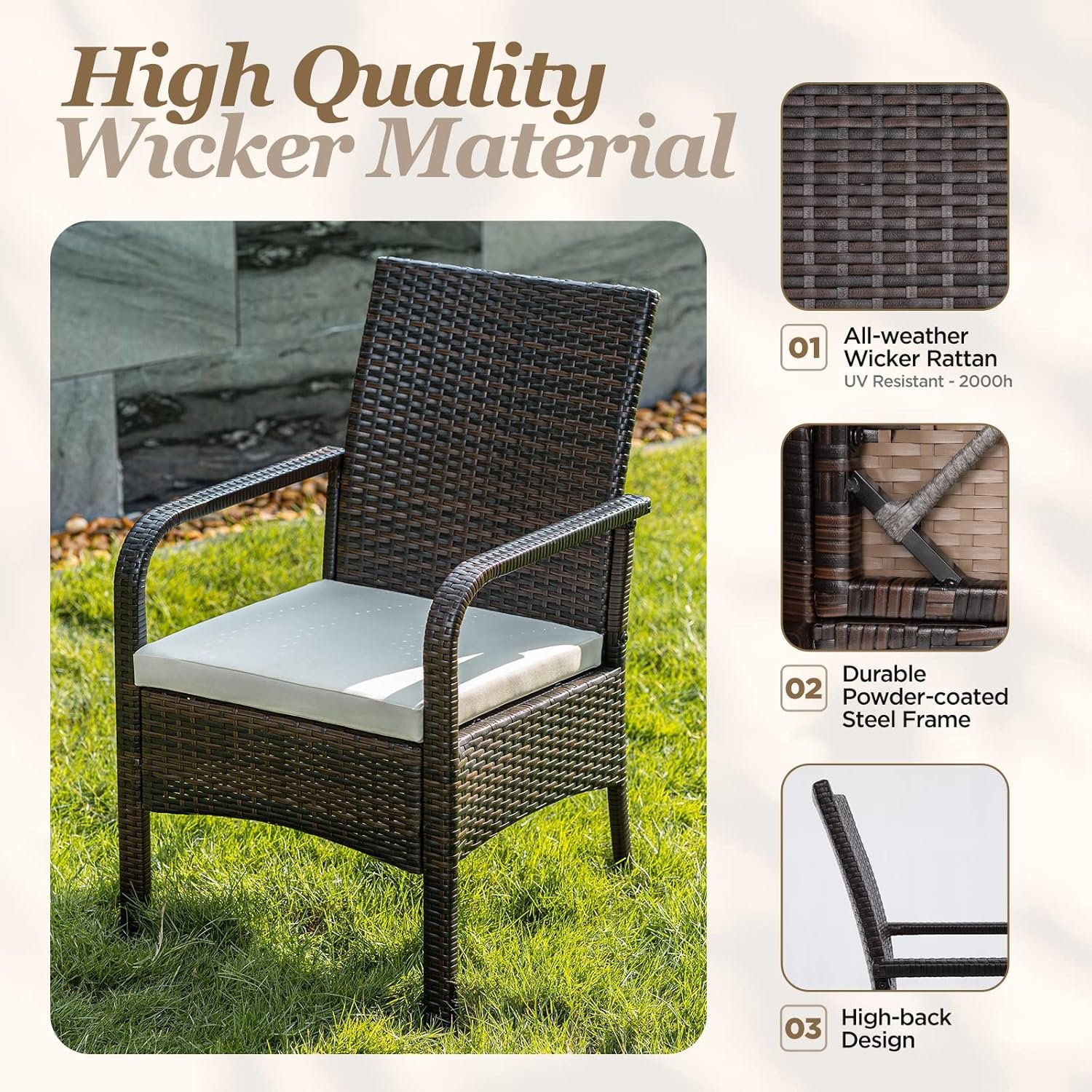 2000 HOURS UV PROTECTED WICKER CHAIRS: These dining chairs set of 4, crafted from high-quality resin wicker, withstand 2000 hours of UV rays; Ideal for outdoor kitchen and dining setups, whether on your balcony, garden, or by the waterfront