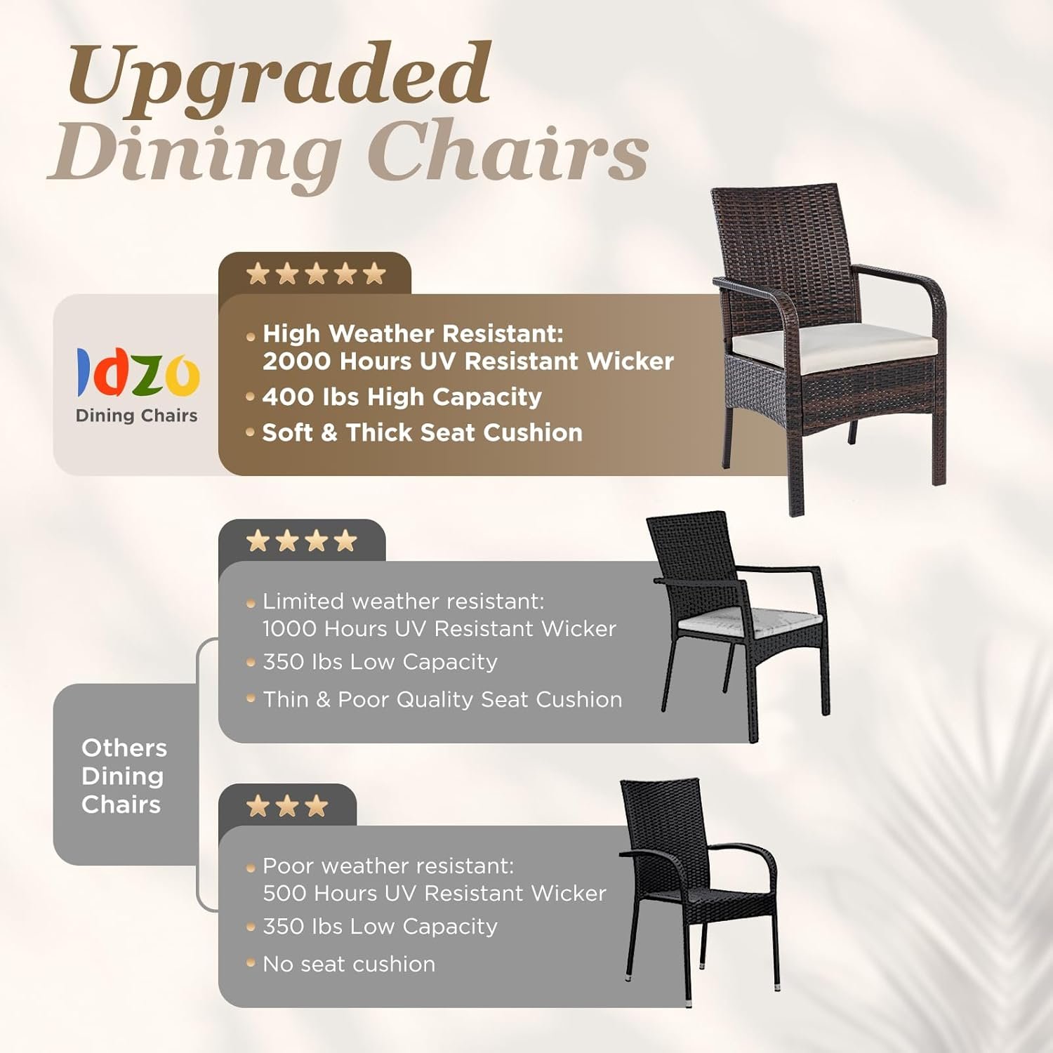 IDZO Lithe Upgraded Wicker Outdoor Dining Chairs Set of 4, 400 lbs Capacity, 2000 Hours UV Protection, Powder-Coated Steel Frame, Removable Seat Cushions, Weather-Resistant Patio Furniture Set