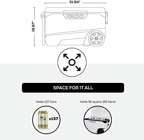 Igloo Marine Ultra 90 QT Cooler, Insulated Cooler Chest with Soft Ride Wheels, Leak-Proof Outdoor Hard Cooler, 5-Day Ice Retention, 137 Can Capacity