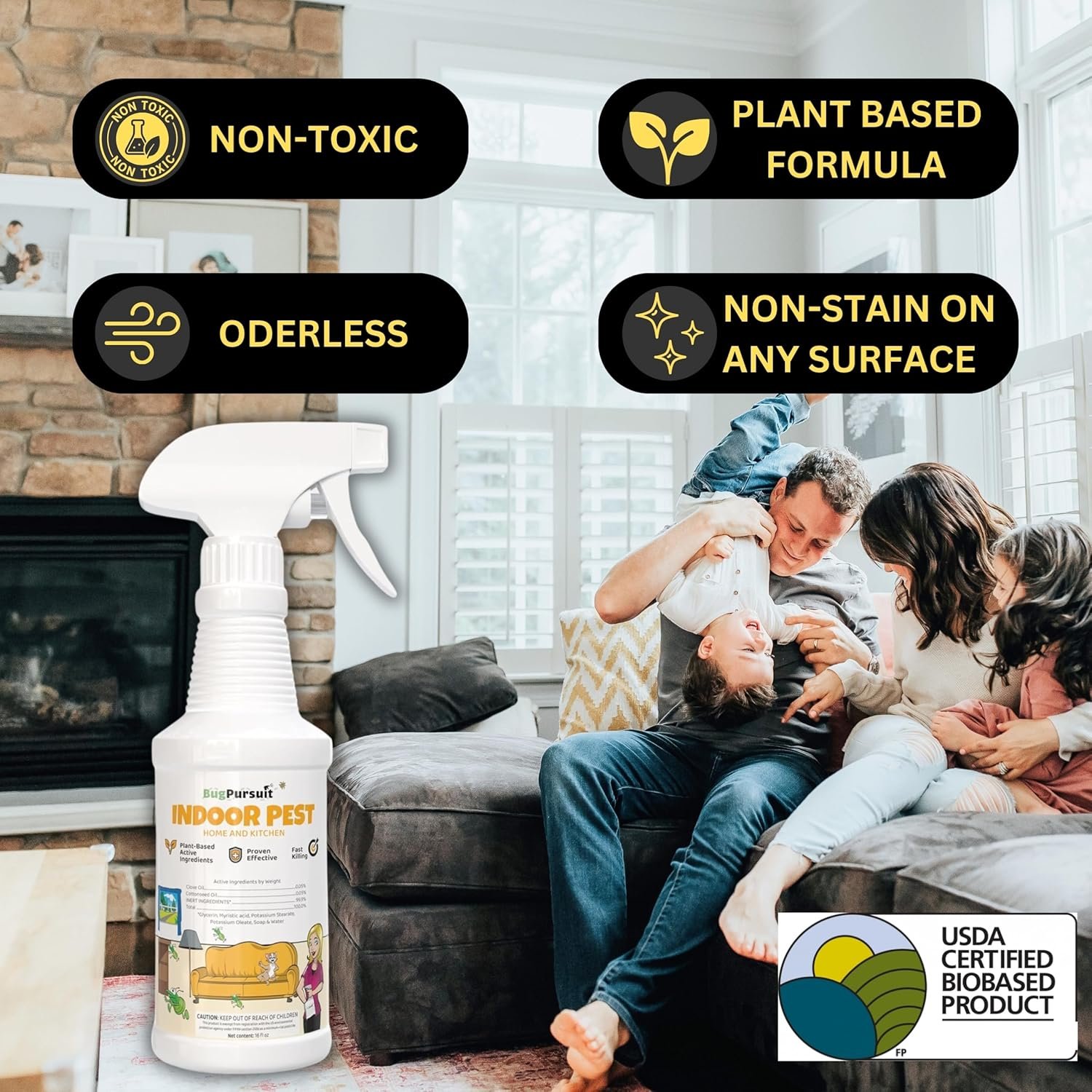 Indoor Pest Control for Ant, Fly, Flea,Tick, Roach, Spider, Moth, Carpet Beetle, Plant Based Insect Killer for Home & Kitchen Use, Natural Solution, Pets & Family Safe (16OZ)