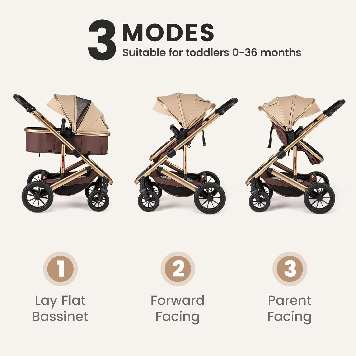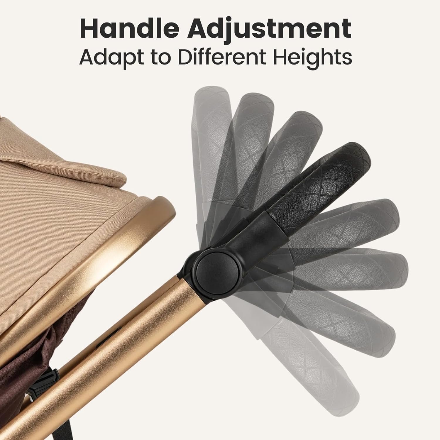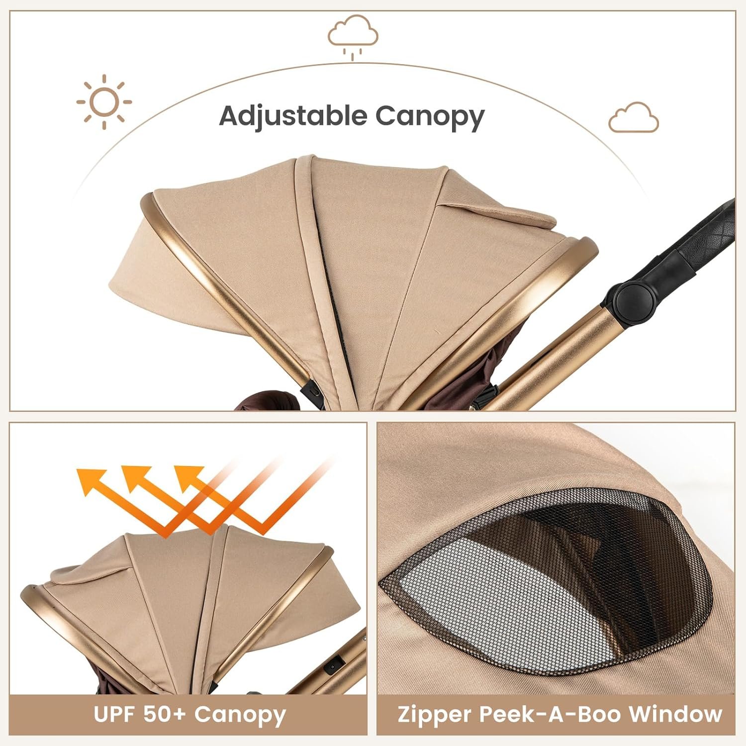 Customized Comfort Features:The handlebar angle can be adjusted in 9 gears, which not only provides a comfortable push experience but also suitable for parents of all heights. By adjusting the back, the baby bassinet can be divided into 3 modes: sitting, semi-reclining , to meet the different needs of the baby.To protect kids from the sun or afternoon showers, the convertible travel stroller comes with a removable and 3 angle-adjustable UV protection canopy.