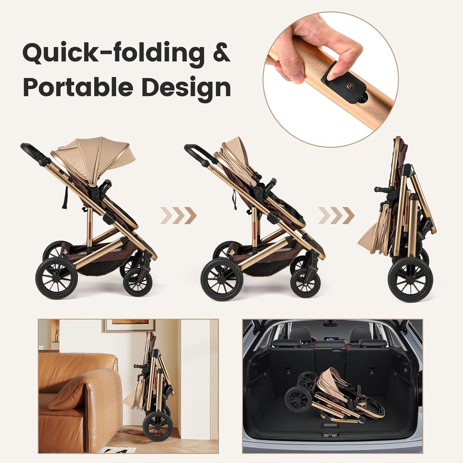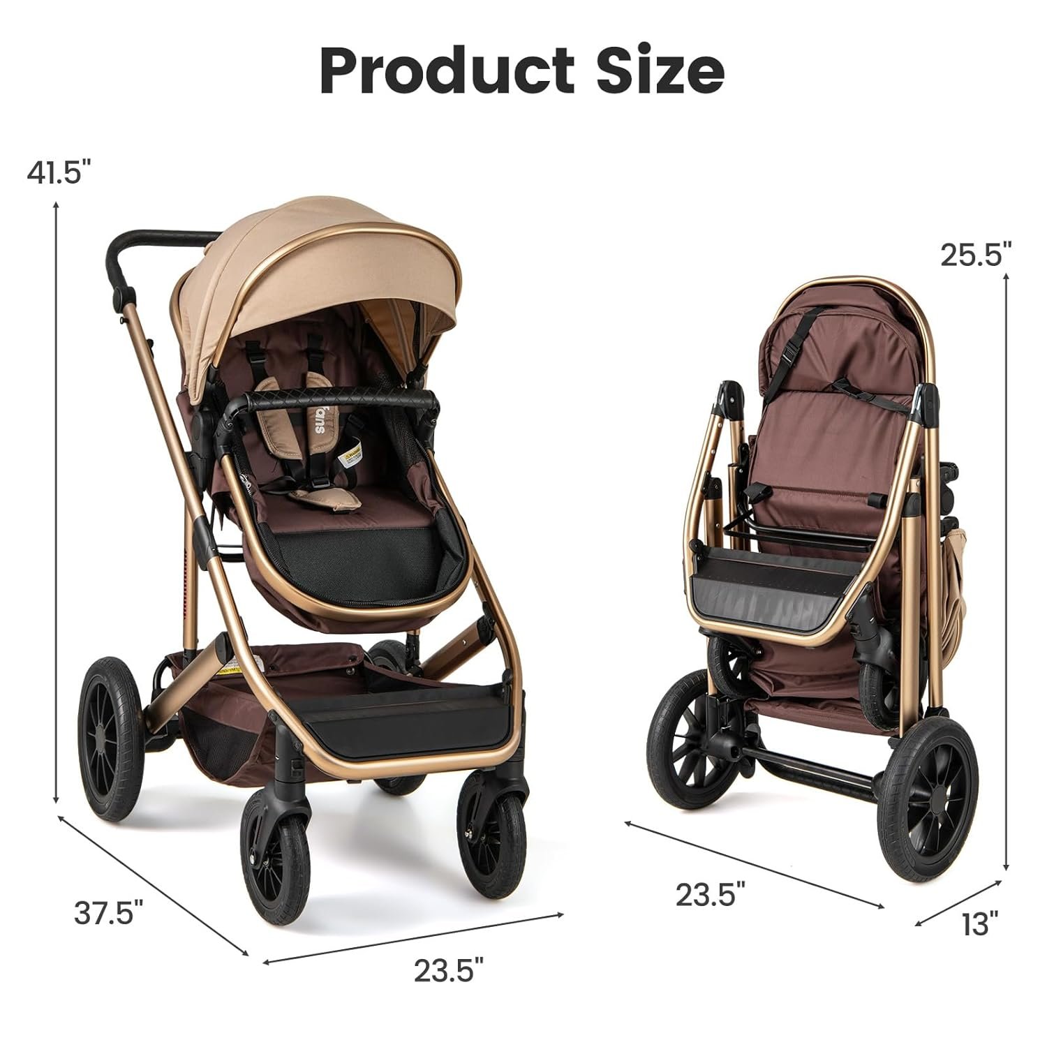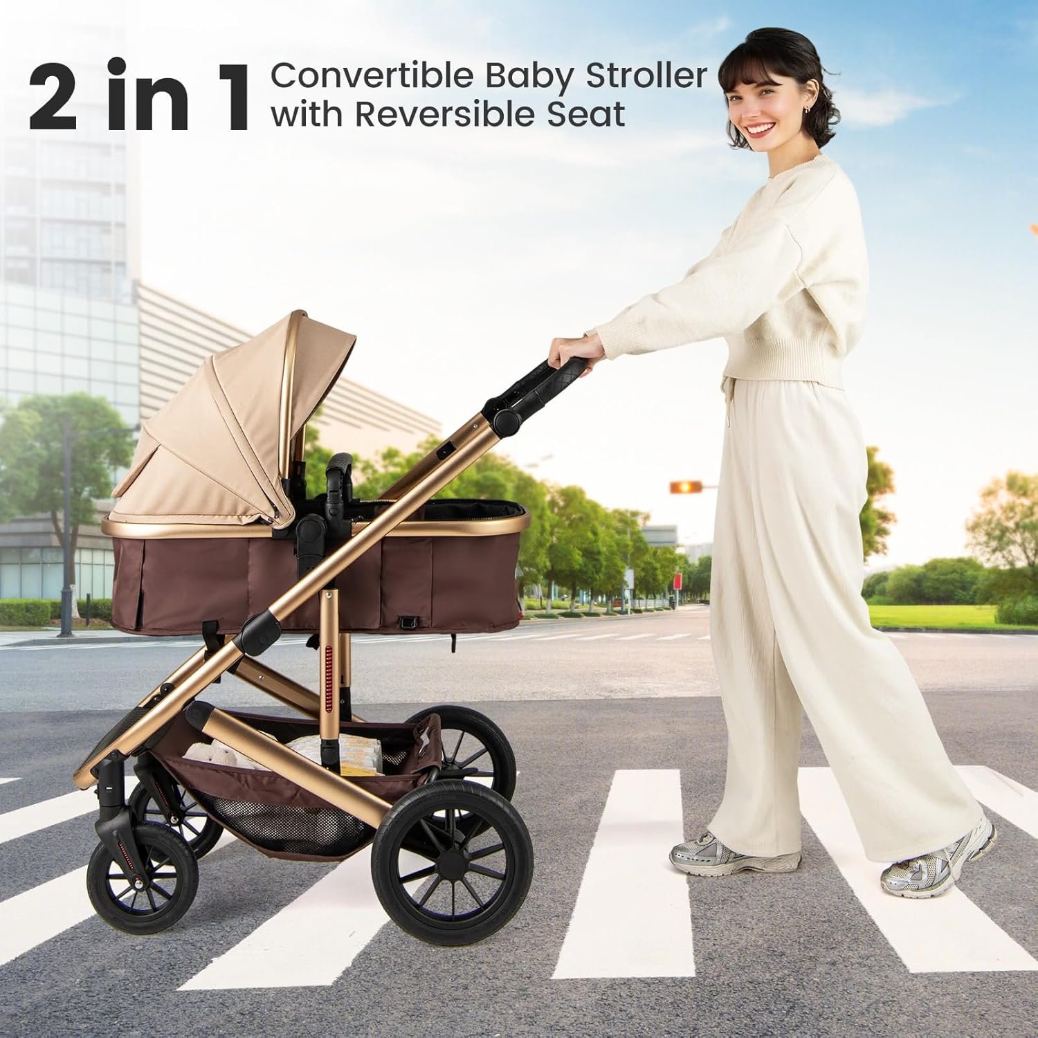INFANS 2 in 1 Baby Stroller, Folding Newborn Pram Convertible Stroller Bassinet for Infant Foldable High Landscape Shock Absorption with Reversible Seat Aluminum Structure for Pushchair