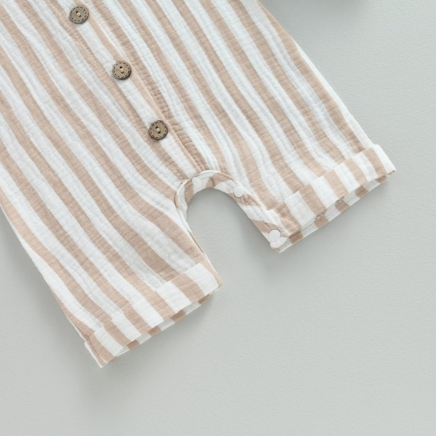 Infant Baby Boys Girls Cotton Linen Jumpsuits Sleeveless Button Down Striped Short Overalls Romper Summer Fall Outfits