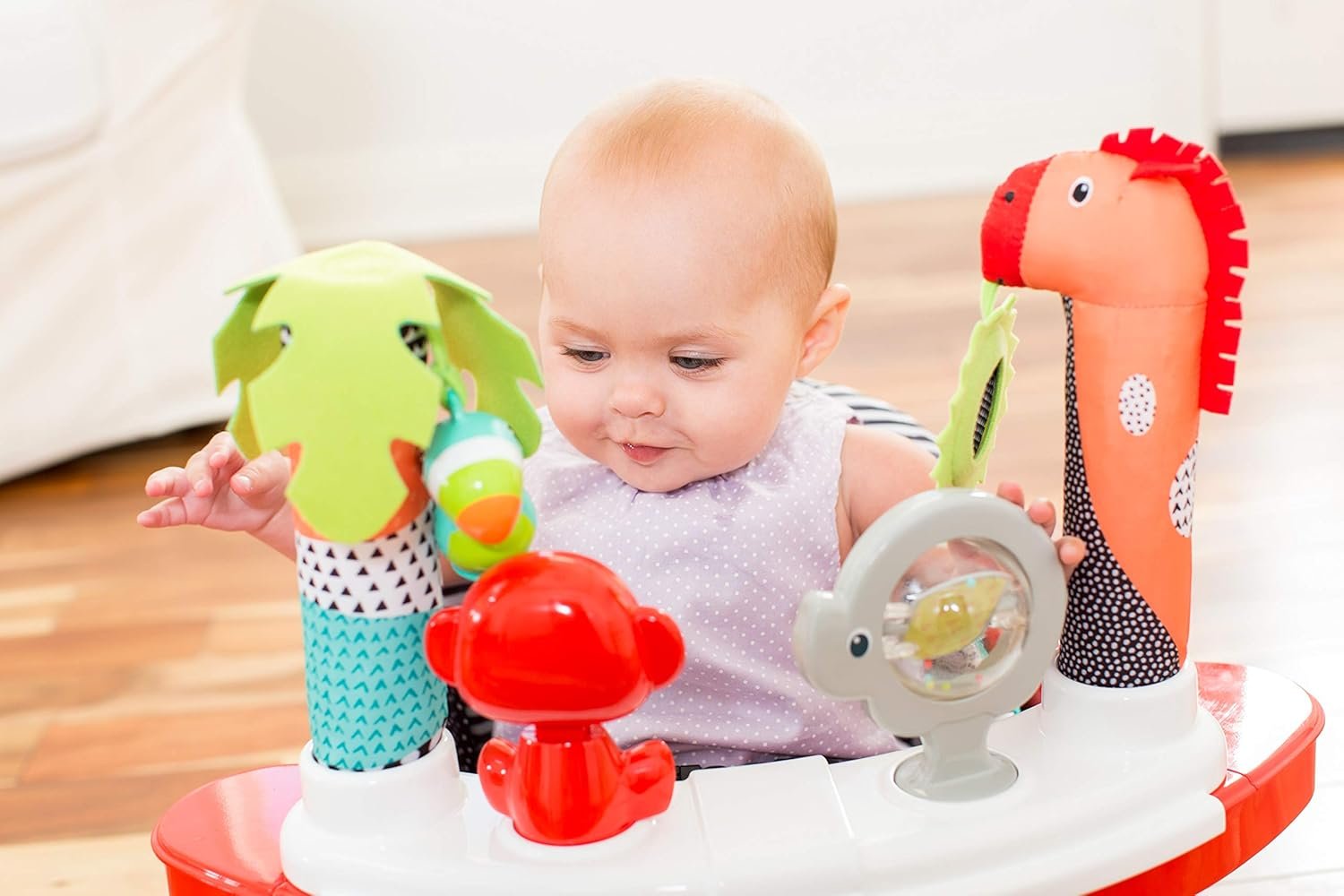 The Grow-With-Me Discovery Seat and Booster is 3 solutions in one, offering an interactive play place, snack-time seat, and a secure booster with harnesses. Babies learn to engage with their surroundings with spinners, mirror play, and silly squeakers, encouraging sensory development. And when it’s time for a snack, just slide away the removable toy pods to reveal a snack tray with a cup holder. As baby grows, use the security straps to affix the booster seat to a kitchen chair.