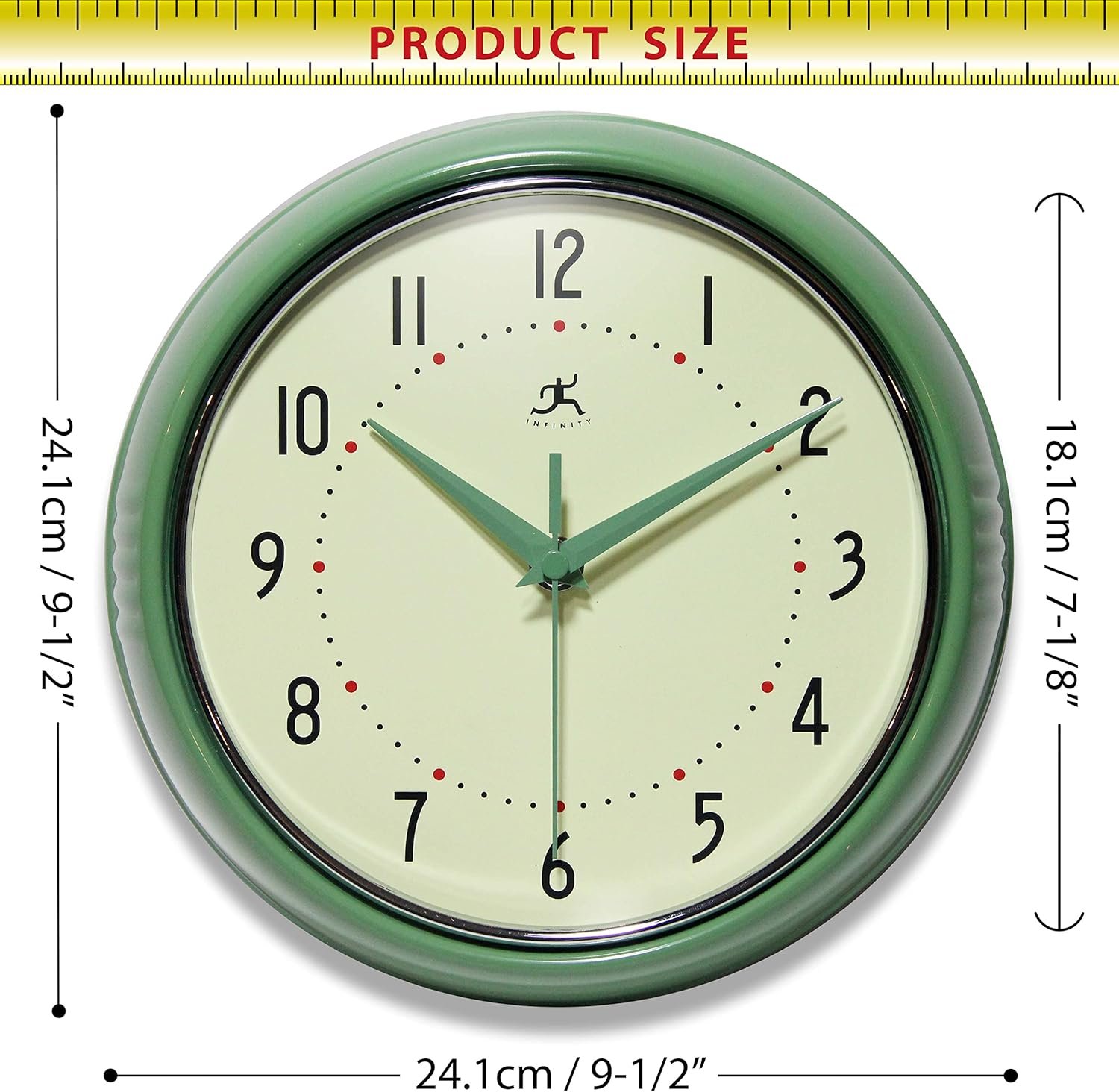 Infinity Instruments LTD. Retro 9 inch Silent Sweep Non-Ticking Mid Century Modern Kitchen Diner Wall Clock Quartz Movement Retro Wall Clock Decorative (Green)…