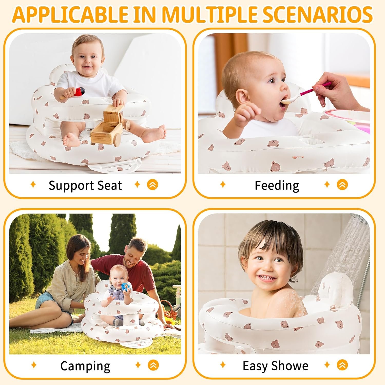 Perfect Growing Companion: Baby floor seat can be used for sitting up, feeding, telling stories, and as a fun baby seat, it could also be a beach seat or camping seat when traveling, This baby portable seat helps build the baby’s confidence and ability to actively socialize and play. Whether as a thoughtful gift for expectant mothers or new parents, it serves as a perfect companion on their journey of parenthood.