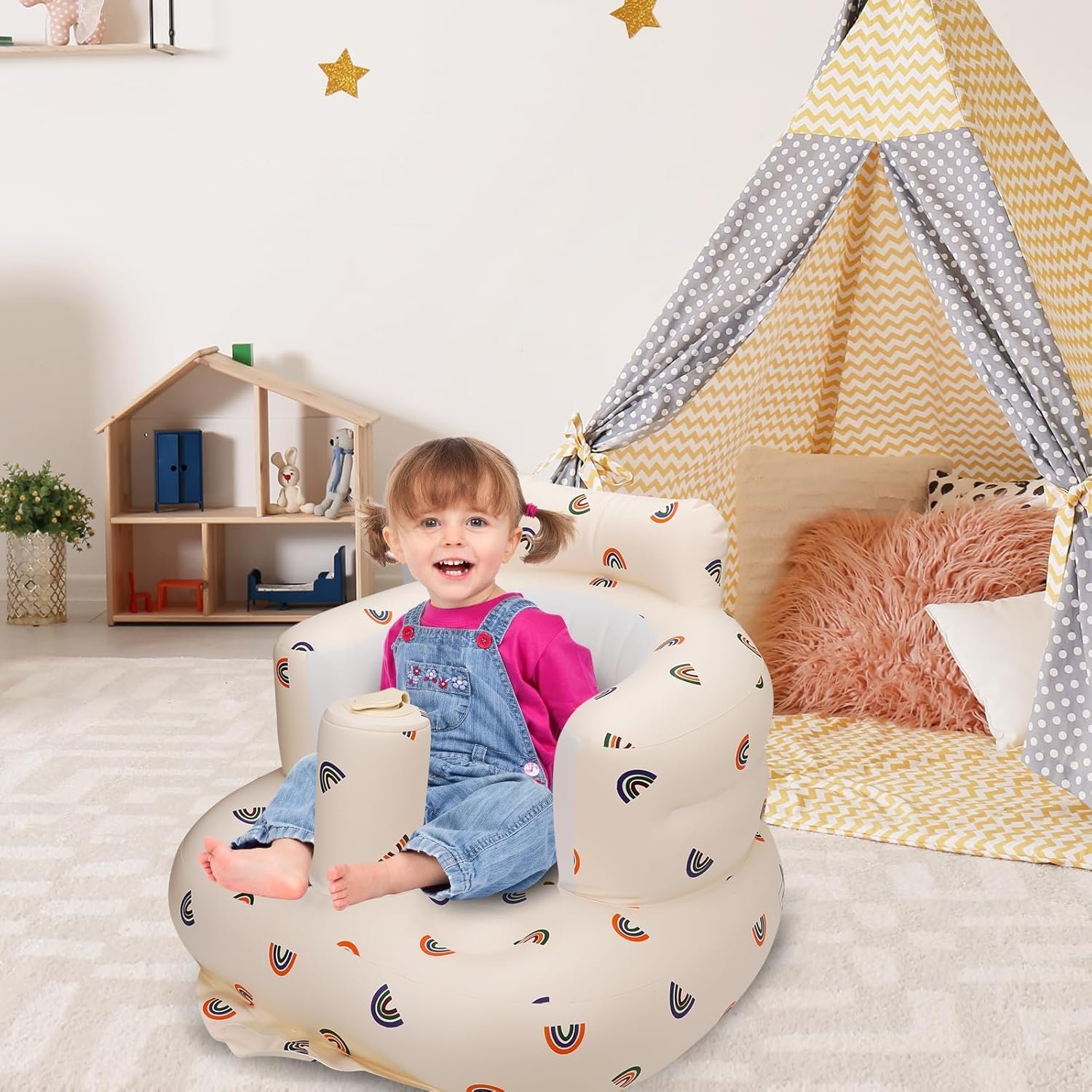 【Multi-Functional Baby Chair】: Our inflatable baby feeding chair is perfect for feeding, sitting up, and can be used on any surface, including the floor, bed, grass, or beach. Whether you’re camping or on a family outing, this chair is a versatile must-have. It also makes a great gift for birthdays, Mother’s Day, Thanksgiving, Christmas, or New Year celebrations.