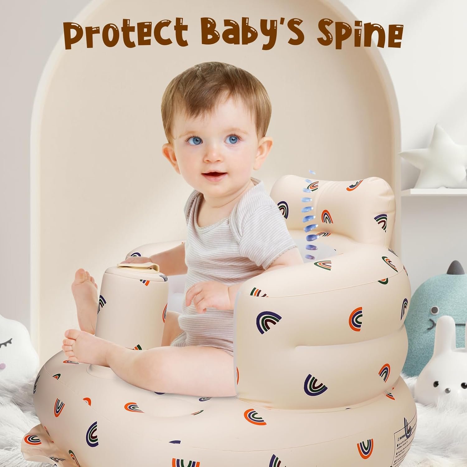 Inflatable Baby Seat for Babies 3 Months & Up,Baby Support Seat Summer Toddler Chair for Sitting Up,Baby Chair Floor Seater with Built in Air Pump (Rainbow)