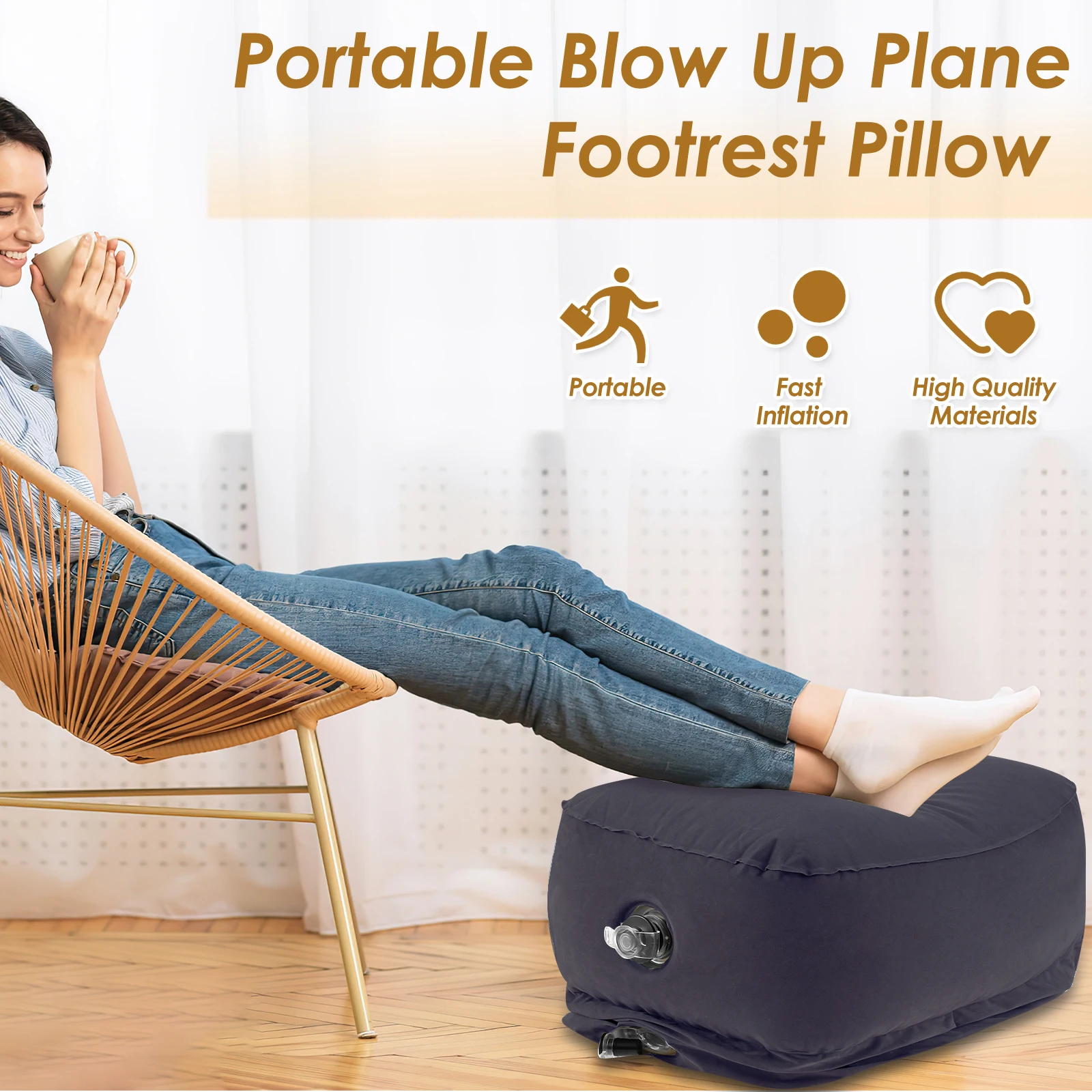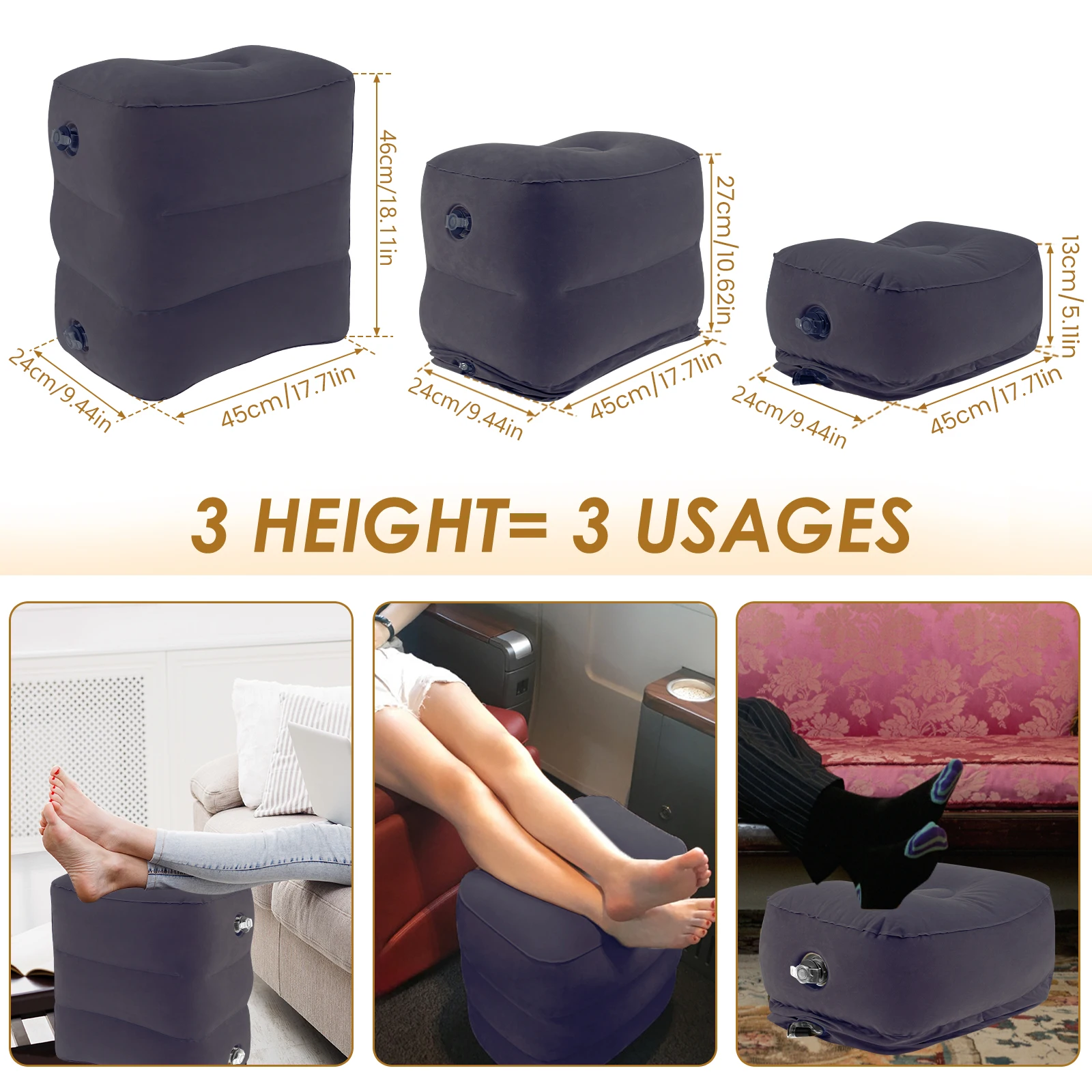 [3 Layer Height Adjustable] This inflatable airplane foot rest features 3 layer height adjustable that is easy to use. You can adjust the heights according to your comfortable position for your legs that is leg caring.