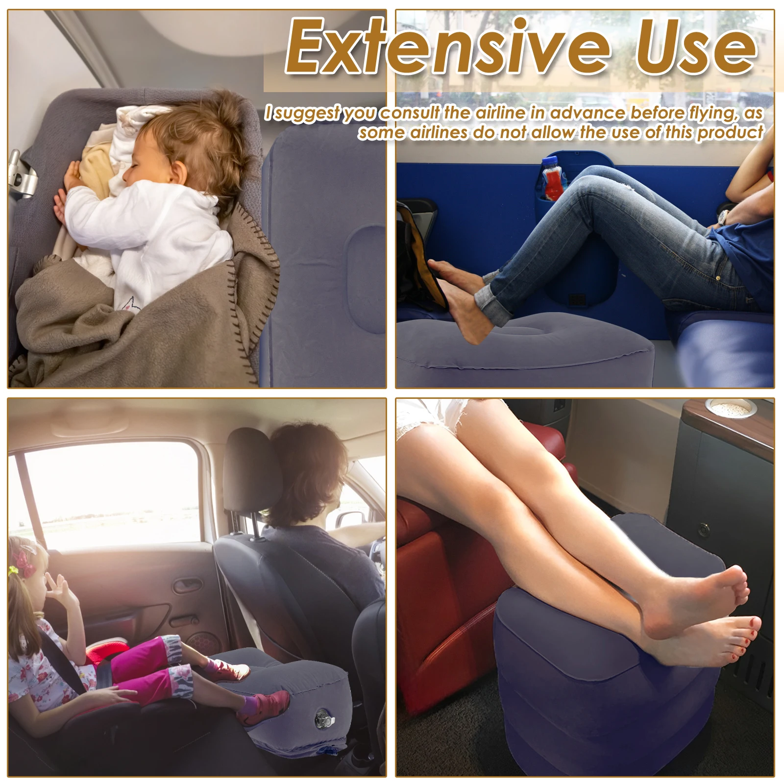 [Multifunctional] This inflatable airplane foot rest is suitable for wide application. Resting your fee in the office or at home. Fill the gap to increase the resting space while air travels or car travels. Also, it can be used for children to sleep or take a break when they get tired. Note: Please consult the relevant airline for whether the inflatable footrest pillow can be used on the plane.