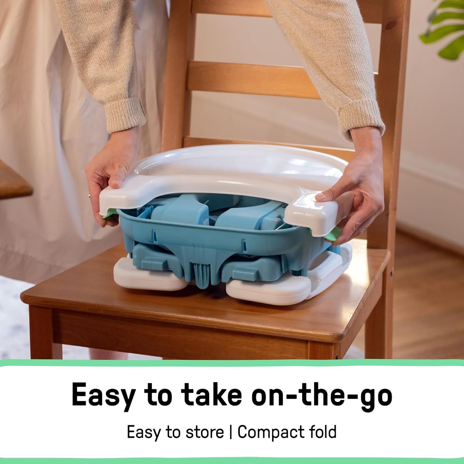 Ingenuity Deluxe Comfort Booster Seat for Kitchen Chair, Compact Fold, Portable, Lightweight, Toddler Booster Seat for Dining Table, from 6 Months to 3 Years – Teal