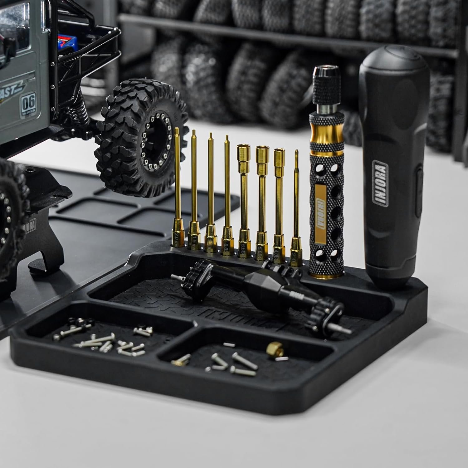 INJORA Silicone Tool Tray, Parts Tray Organizer with Tool Stand (160x160mm)