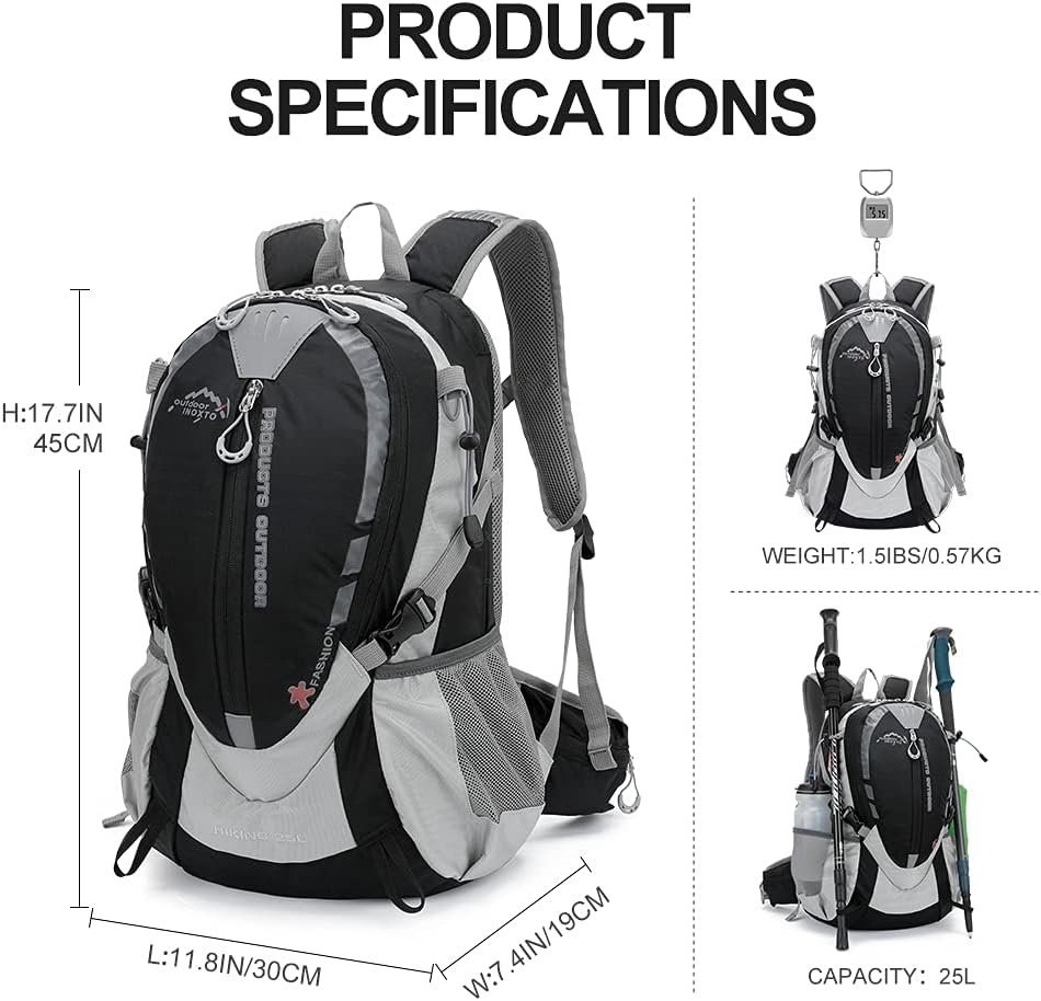 【Perfect Capacity】: the storage space of our backpack is 25 liters. This capacity can not only help you store essentials for travel or climbing. And you won’t feel tired of being overweight. It allows you to focus on the journey. The intimate grooming, soft curves, and sleek appearance will make you stick around.